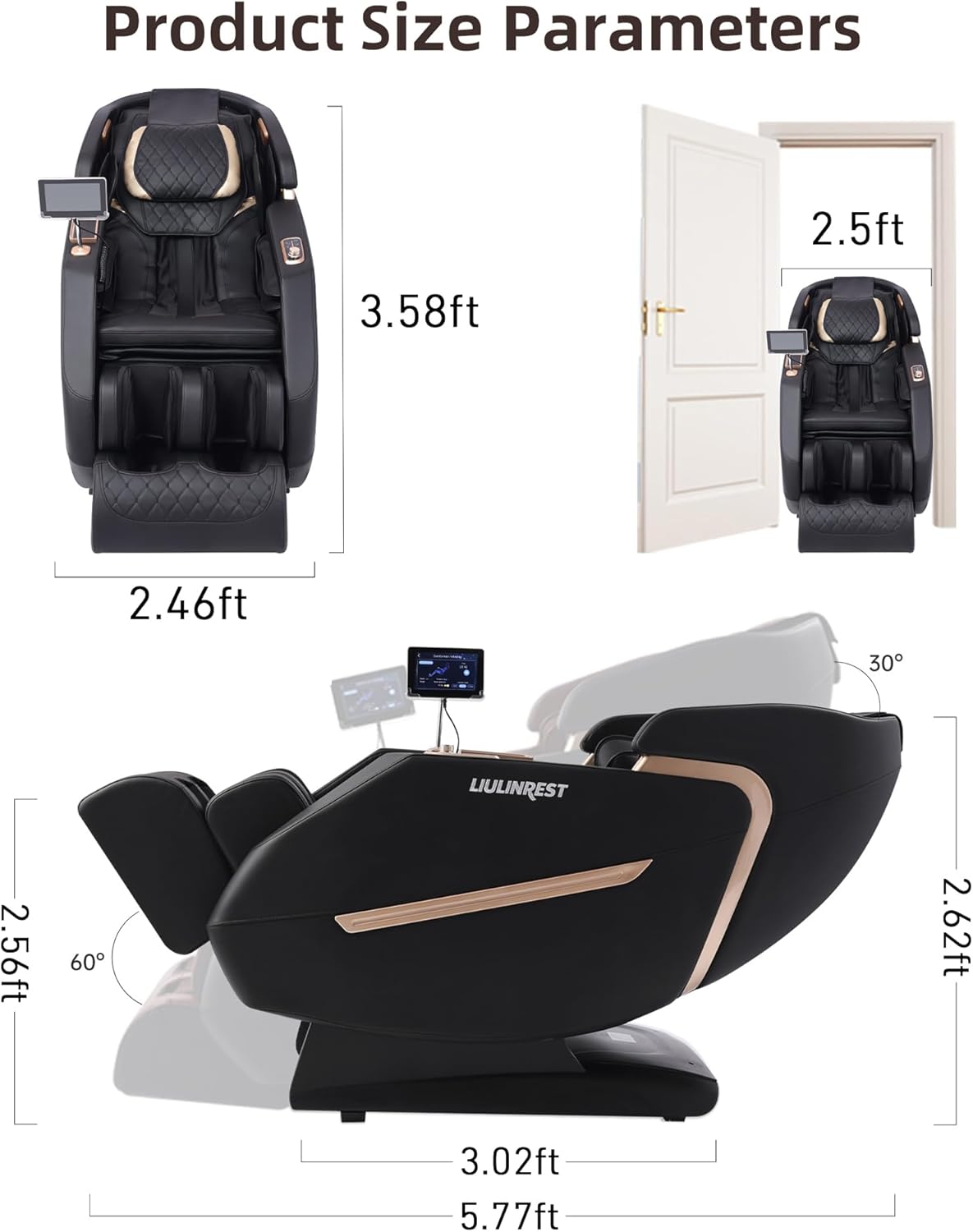 【Long SL-Track & Full Body Airbags】This intelligent massage chair has a long SL-track from neck to thigh, covering full body to massage. Full body airbags from head to foot protect you while massaging strongly and offer a comfortable feeling, making it a practical and cozy option among massage chairs full body and recliner.