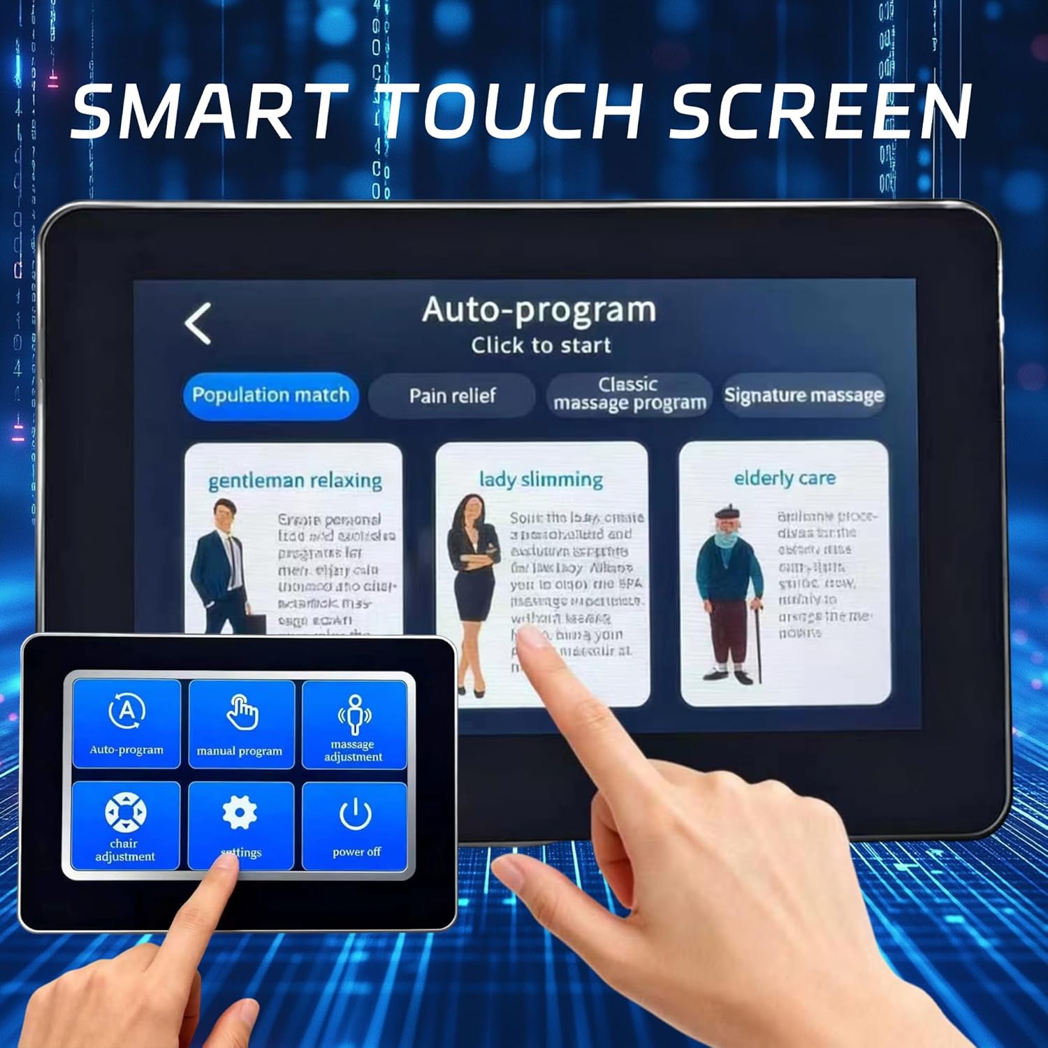【Smart Voice Control & Bluetooth Speaker】You can enjoy hands-free operation with Smart voice control by simply issuing a command; the 7-inch touch screen offers easy management of your massage experience, and the built-in bluetooth speaker lets you enjoy high-quality sound while relaxing—features that make it a more indulgent choice than a standard massage office chair.