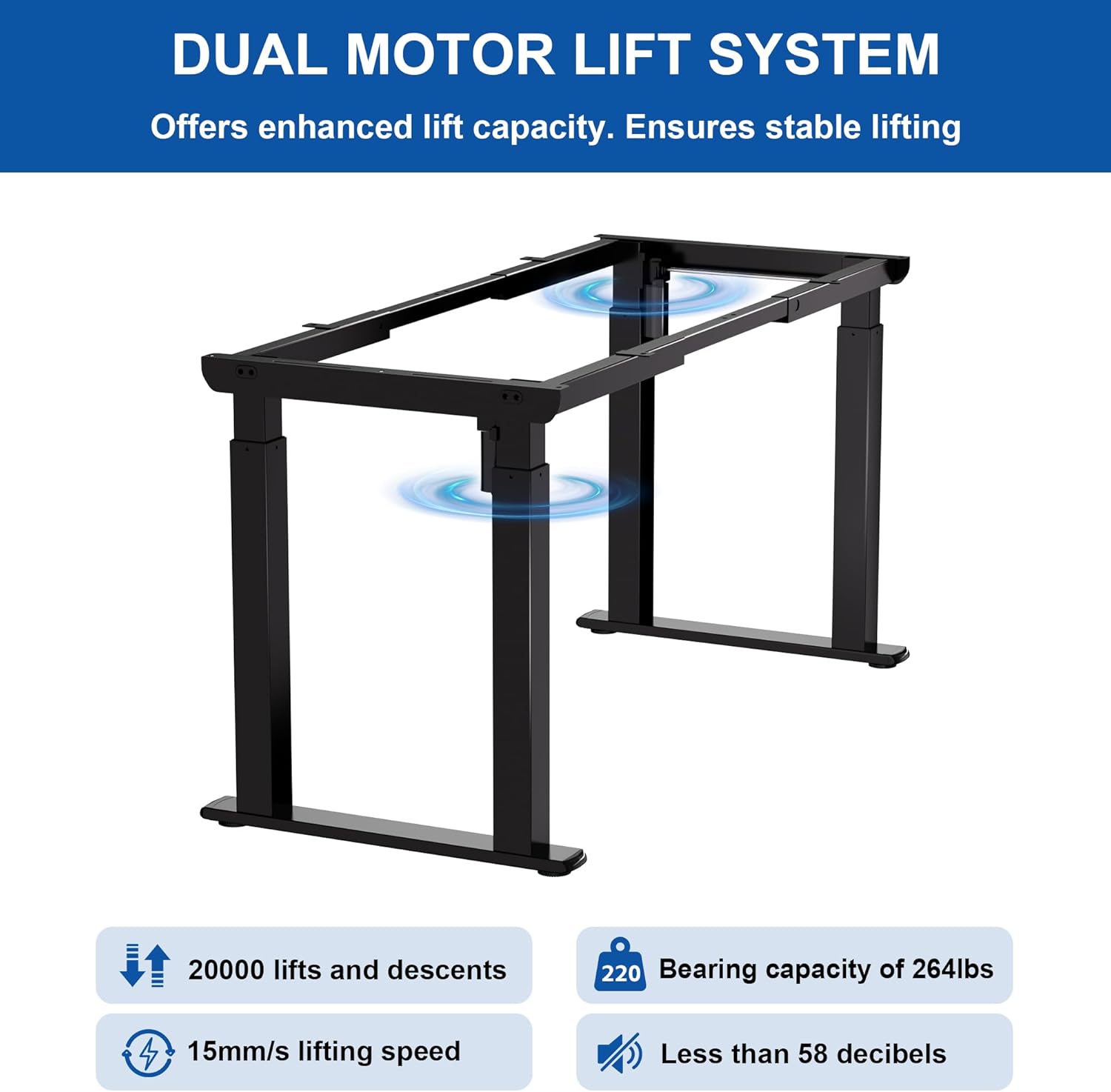☑【Powerful Dual Motor Lift】–Equipped with a robust dual-motor system, the desk smoothly lifts and lowers at a speed of 15mm per second. The four-legged design adds stability during the lifting process, ensuring a seamless and safe operation. With noise levels under 50dB, you can enjoy a quiet work environment.