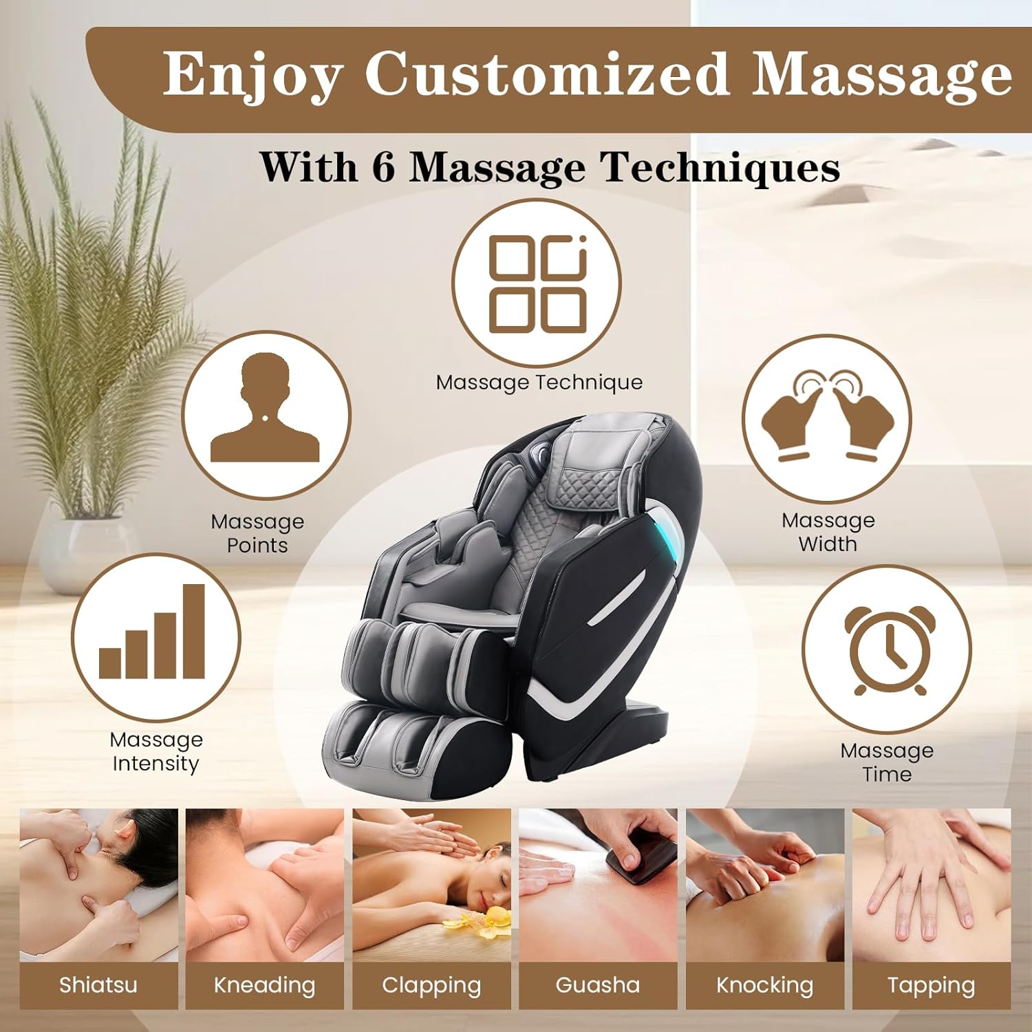 Cutting-edge 4D Massage Chair:Experience a truly immersive and lifelike massage with robot hands, over 95% similar to a real-person massage. With airbag points for a full-body massage, 6 auto modes, and 5 techniques including Shiatsu, Kneading, Tapping, Knocking, Kneading & Tapping, as well as 3-level intensity airbag pressure, you have a wide range of options to customize your massage or target specific areas to help relieve body pain