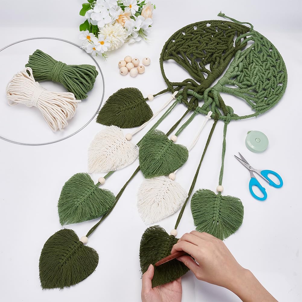 ACRNIGHEET DIY Macrame Kit for Adults Beginners Handmade Green Leaves Tree of Life DIY Boho Macrame Wall Hanging Ornaments with Macrame Supplies Macrame Wall Hanging Kit for Home Decor