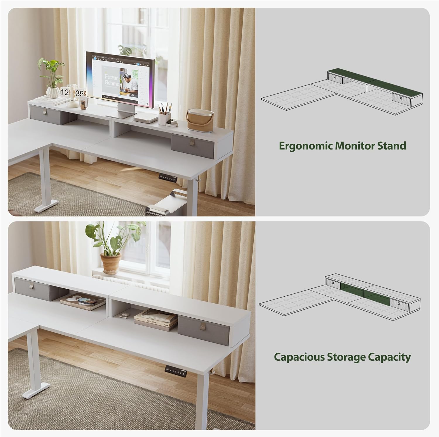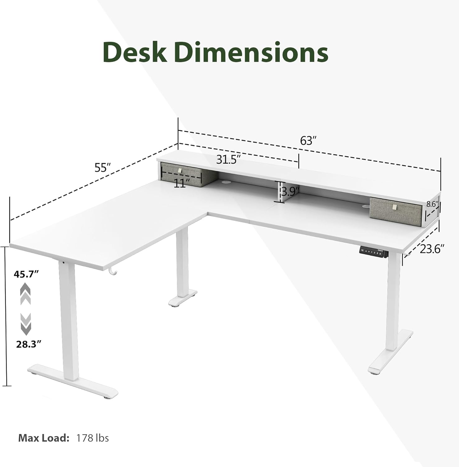 Agilestic L Shaped Electric Standing Desk with 2 Drawers, 63 Inch Ergonomic Adjustable Height Desk with Storage, Corner Desk Sit Stand up Computer Table for Work Office Home, White