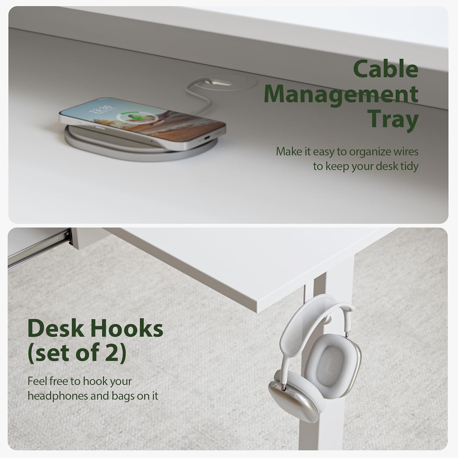 【2 Fabric Drawers】The 2 fabric drawers above the desktop can organize your clutter and keep the desktop clean and tidy at all times. The tabletop is made from low-VOC materials and meets federal and state safe air standards.