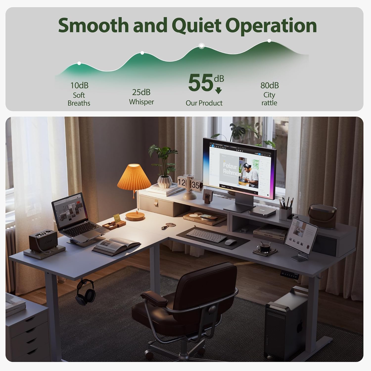 【L Shaped Design】The L-shaped extra-large desktop can provide ample office space and can be adapted to any corner of your home.