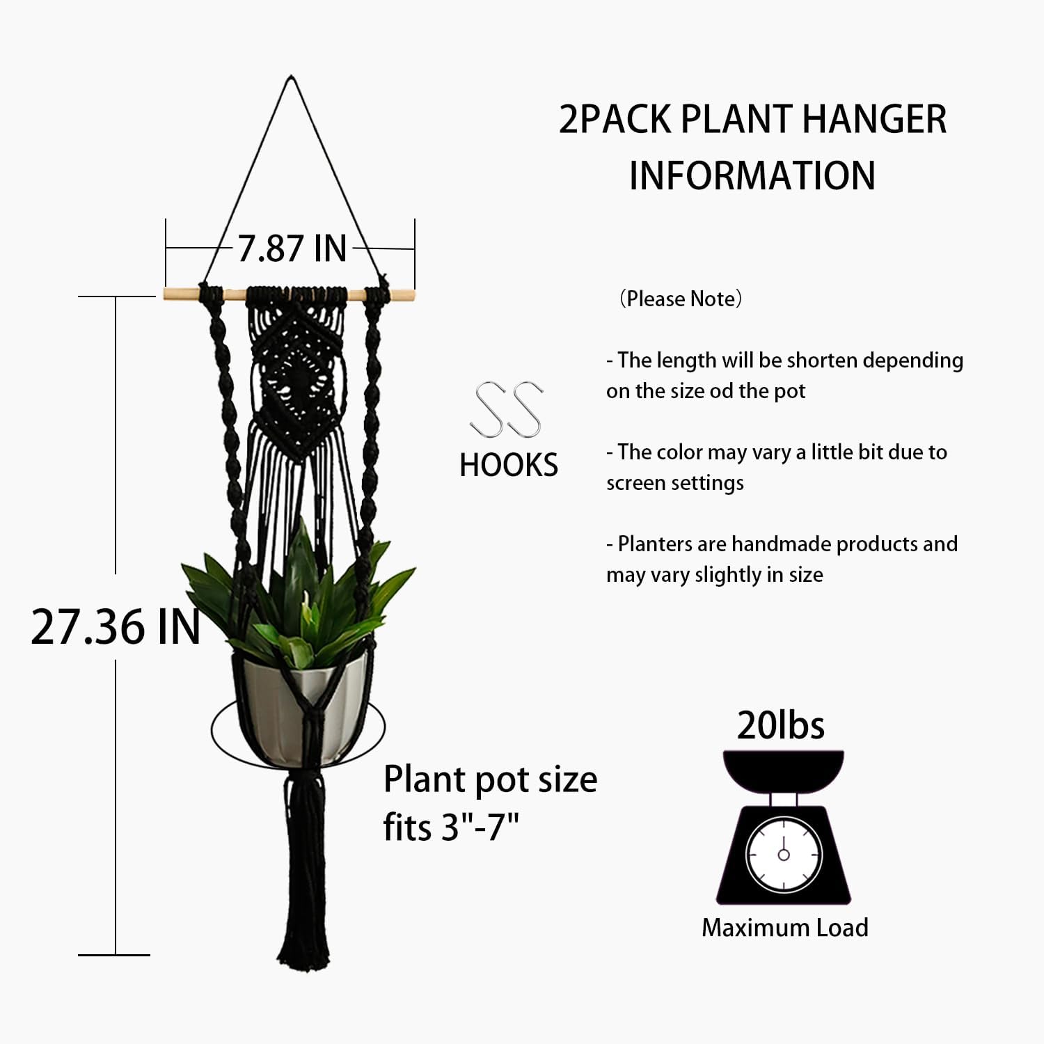 SERVICE & HIGH QUALITY – You can get black plant hangers and hooks. If you have any questions before or after the purchase, feel free to contact us. Please kindly note that the length will shorten depending on the size of the pot, enjoy your life with this product now