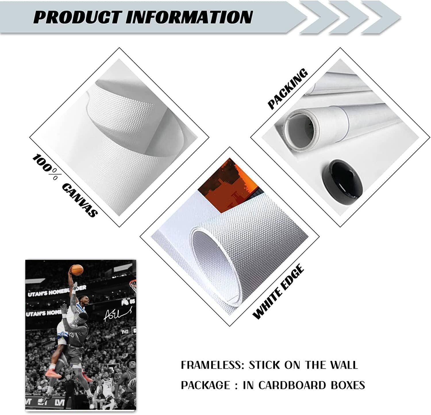 Applicable People Basketball Enthusiasts And Fans Fans Who Are Keen On Nba, Cba And Other Leagues, Especially Loyal Fans Of Specific Stars (Such As Kobe, James, Curry). Teens And Young People Like To Express Their Support For Idols Through Decoration. Sports Culture Enthusiasts People Who Resonate With Sportsmanship, Teamwork Or Competitive Aesthetics May Be Attracted By The Design Even If They Are Not Basketball Fans. Bedroom/Children’S Room: Inspire Children To Pursue Their Sports Dreams And Create A Vibrant Atmosphere. Living Room/Study Room: As A Visual Focus, Show The Owner’S Interests And Personality. Basement/Game Room: Match Basketball Hoops, Jerseys And Other Elements To Create A “Fan-Exclusive Space”. Business And Public Space Sports Venues: Wall Decoration Of Basketball Courts And Training Centers To Enhance The Sports Atmosphere. Retail Stores: Sporting Goods Stores And Trendy Brand Stores Are Used As Theme Displays To Attract Target Customers. Office Space: Offices Or Meeting Rooms Of Sports Companies And Sports Teams To Convey Brand Culture. Event And Festival Scenes Fans Gathering/Watching Party: As A Background Board Or Photo Area Decoration. Basketball Theme Wedding: Incorporate The Hobbies Of The Bride And Groom, And Creatively Decorate The Ceremony Area. School/Club Activities: Used For Basketball Game Awards, Club Recruitment And Other Scenes. Special Customized Uses Commemorative Prints: Limited Editions Such As Tributes To Retired Stars And Commemorations Of Team Championships, With Both Emotional And Collection Value. Star Co-Branded Items: Launched In Cooperation With Brands To Attract Cross-Border Fans Of Trendy Culture And Sports. Matching Suggestions Style Coordination: Match With Metal Frames, Neon Lights, Retro Jerseys And Other Elements To Enhance The Sports Industrial Style.