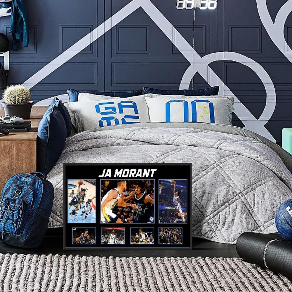 [BLACK FRAMED BASKETBALL SUPERSTAR JA MORANT SIGNED POSTER FOR BOYS GIFT]: The basketball superstar Ja Morant poster that children love, and the cool design. It is an indispensable display decoration for basketball associations/teams on campus, inspiring this young child to be active Go up, move forward bravely to your favorite basketball dream! Star Ja Morant Posters Perfect for kids Christmas gifts, birthday gifts, back to school gifts, Thanksgiving gifts, your kids will love it.