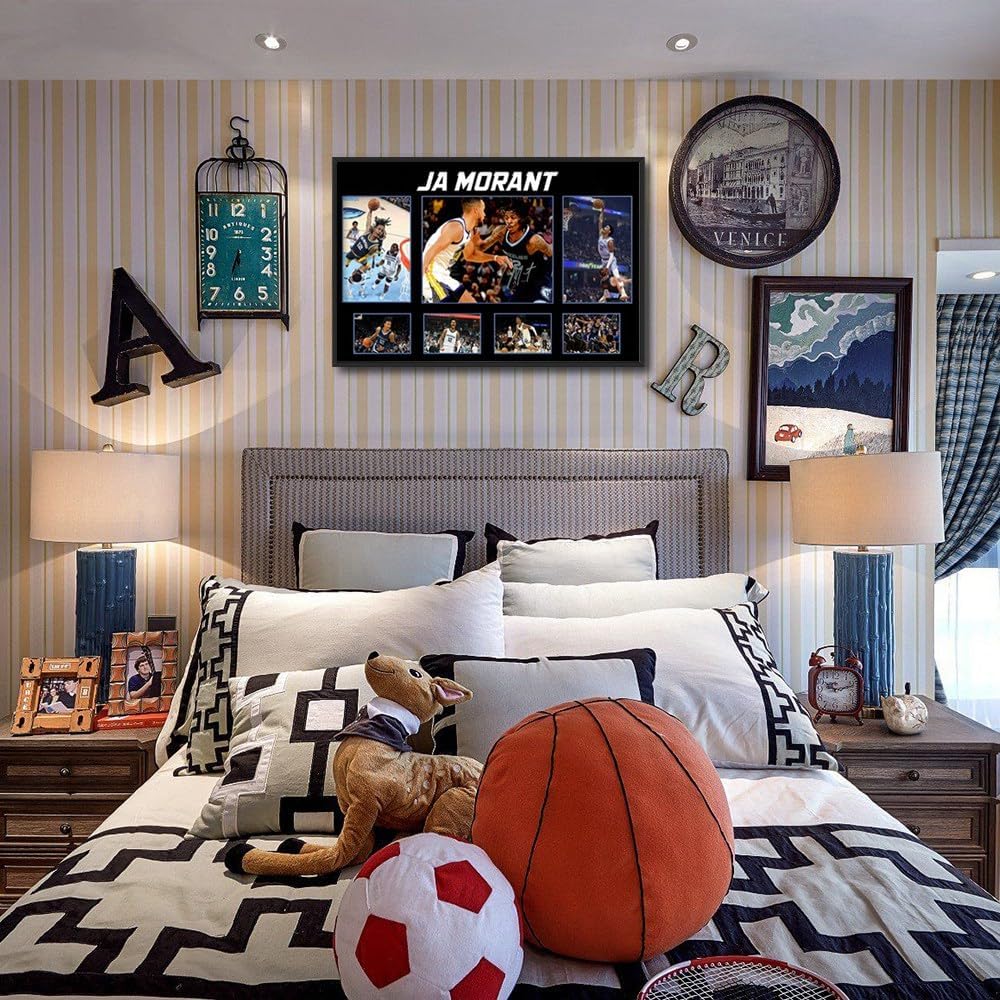 [BLACK FRAMED BASKETBALL SUPERSTAR JA MORANT SIGNED POSTER FOR BOYS GIFT]: The basketball superstar Ja Morant poster that children love, and the cool design. It is an indispensable display decoration for basketball associations/teams on campus, inspiring this young child to be active Go up, move forward bravely to your favorite basketball dream! Star Ja Morant Posters Perfect for kids Christmas gifts, birthday gifts, back to school gifts, Thanksgiving gifts, your kids will love it.
