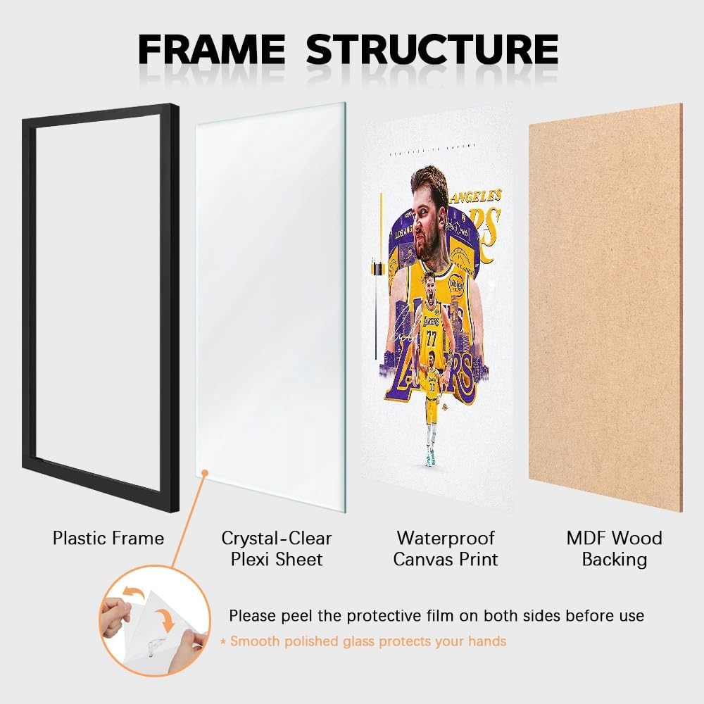 [EASY HANGING] Black Framed Basketball Superstar Luka Doncic Posters-Our plastic frames come with plexiglass covered by protective film and two metal hangers for easy hanging. With simple clips at the back of the frame, you can easily disassemble and replace any picture or photo without any tools needed.