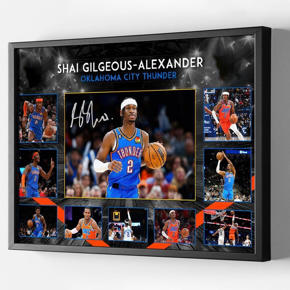 [BLACK FRAMED BASKETBALL SUPERSTAR SHAI GILGEOUS-ALEXANDER SIGNED POSTER FOR BOYS GIFT]: The basketball superstar Shai Gilgeous-Alexander poster that children love. It is an indispensable display decoration for basketball associations/teams on campus, inspiring this young child to be active Go up, move forward bravely to your favorite basketball dream! Star Shai Gilgeous-Alexander Posters Perfect for kids Christmas gifts, birthday gifts, back to school gifts, Thanksgiving gifts.