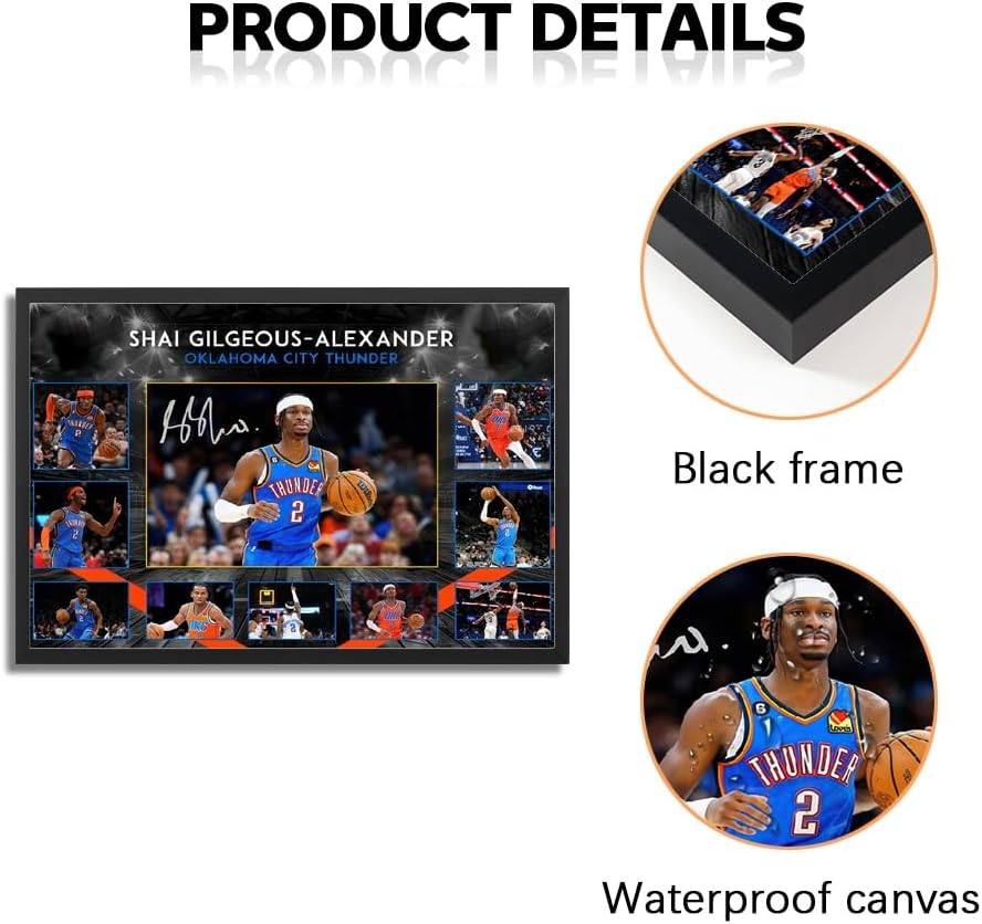 Black Framed Basketball Superstar Shai Gilgeous-Alexander Signed Poster For Kids Fans Room Bedroom Wall Decor-Canvas Art Print Pictures For Teen Boy Birthday Gifts