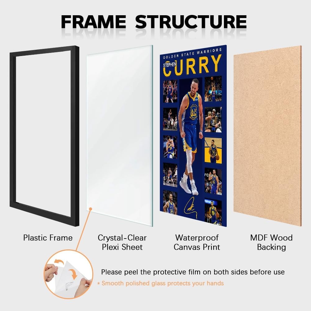 [EASY HANGING] Black Framed Basketball Superstar Stephen Curry Posters-Our plastic frames come with plexiglass covered by protective film and two metal hangers for easy hanging. With simple clips at the back of the frame, you can easily disassemble and replace any picture or photo without any tools needed.