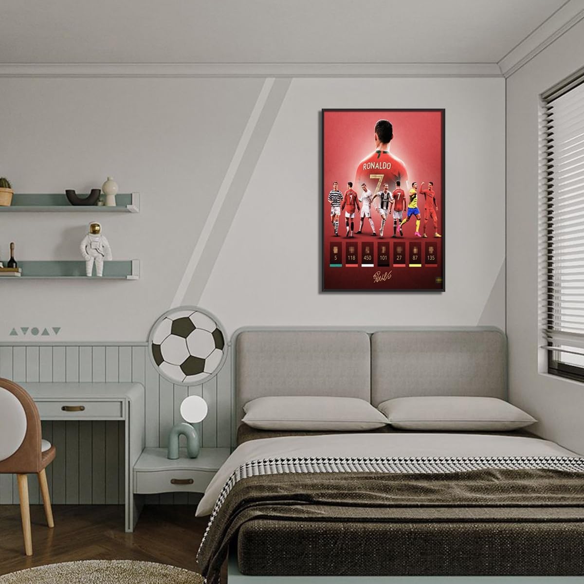 ⚽️[Black Framed Cristiano Ronaldo Poster] The High-Grade Black Frame Enhances The Overall Texture Suitable For Kids Teen Boy Soccer Fans Room Bedroom Decor Spaces.High-Definition Inkjet + Canvas Texture, Full Of Details Adopting High-Resolution Printing Technology And High-Simple Black Framed Design