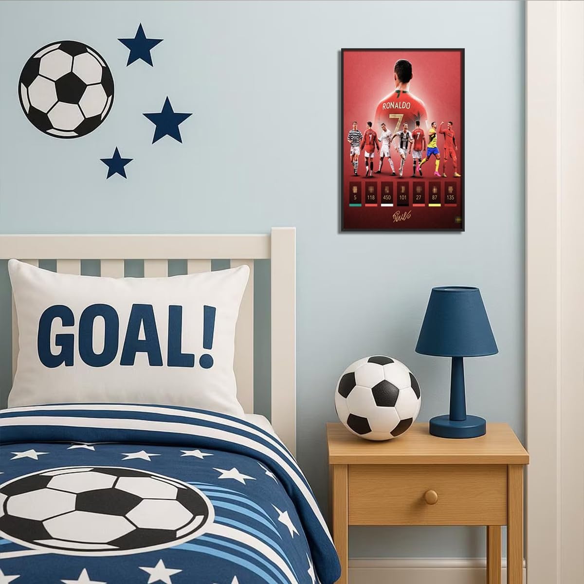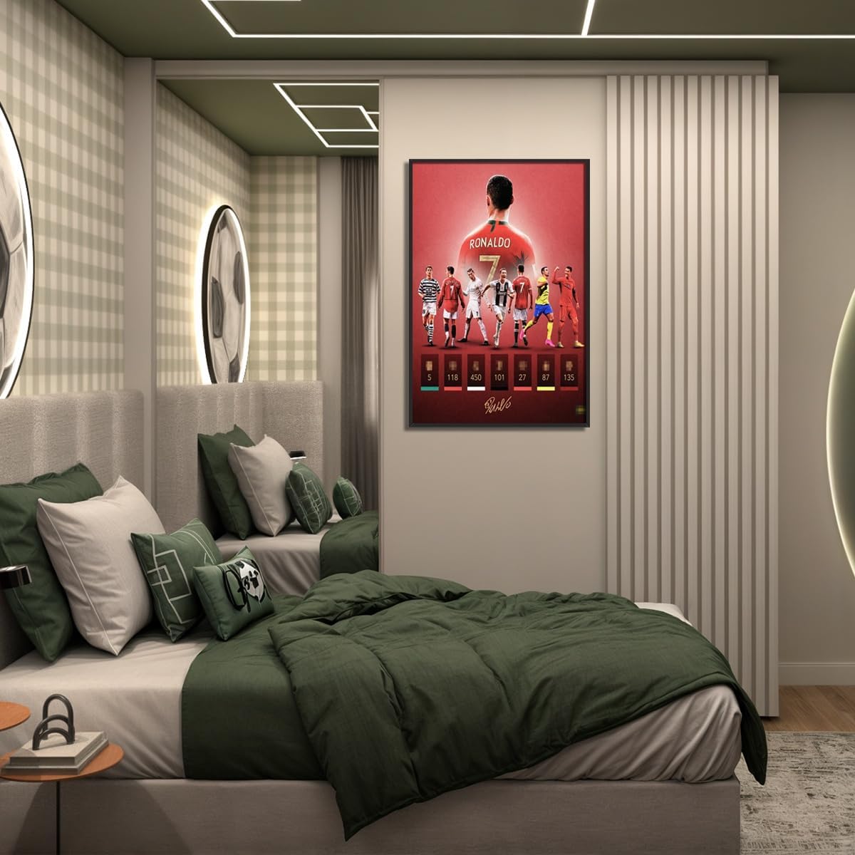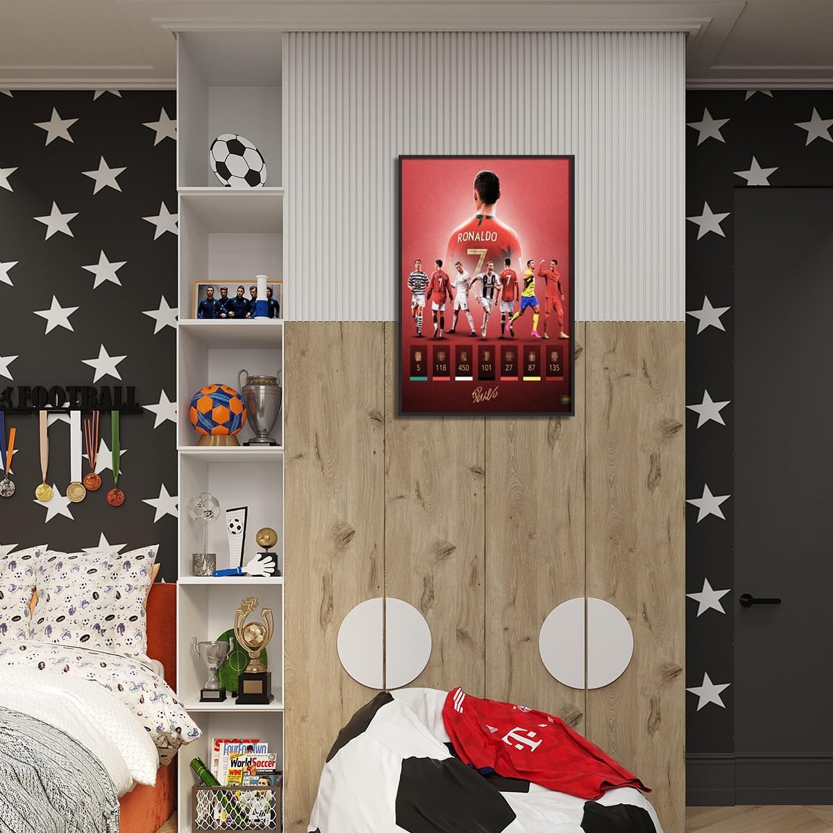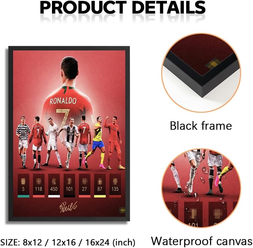 ⚽️[Black Framed Cristiano Ronaldo Poster] The High-Grade Black Frame Enhances The Overall Texture Suitable For Kids Teen Boy Soccer Fans Room Bedroom Decor Spaces.High-Definition Inkjet + Canvas Texture, Full Of Details Adopting High-Resolution Printing Technology And High-Simple Black Framed Design