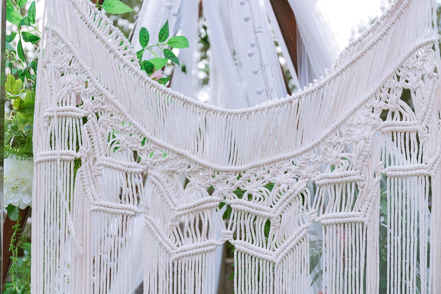 Macrame Wedding Backdrop Perfect for wedding arch ceremony, party or any other celebration at home and outdoors. It can be hanged in livingroom, hallway,a headboard above your bed, also a admirable decoration for baby nursery or kids room.