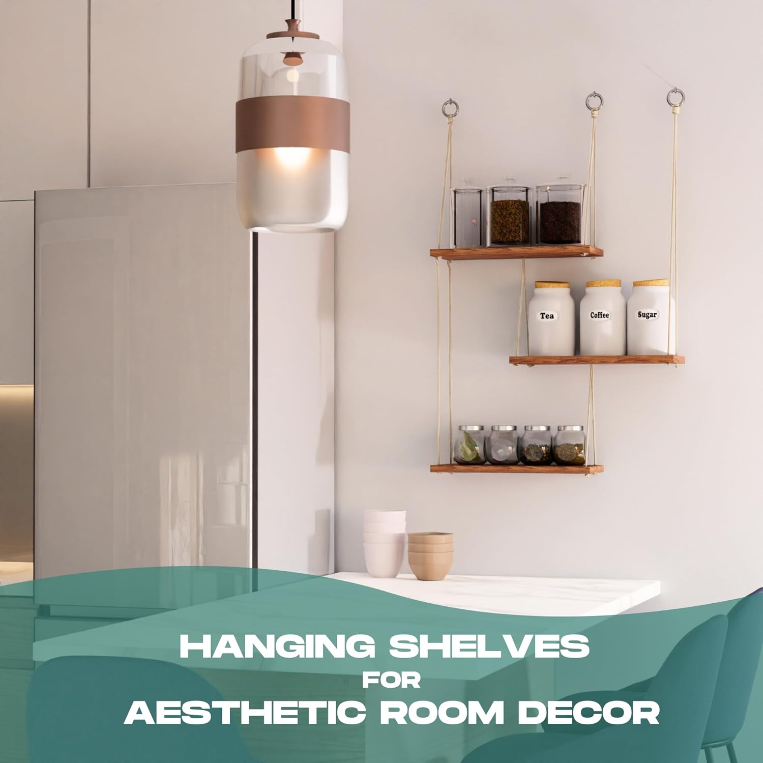 🌱 Hanging Wall Shelves for many rooms – Our brown boho floating plant shelves are perfect for bedrooms, bathrooms, windows, nurseries, and all decor. They provide convenient storage. Add a touch of nature with our hanging plant shelves.
