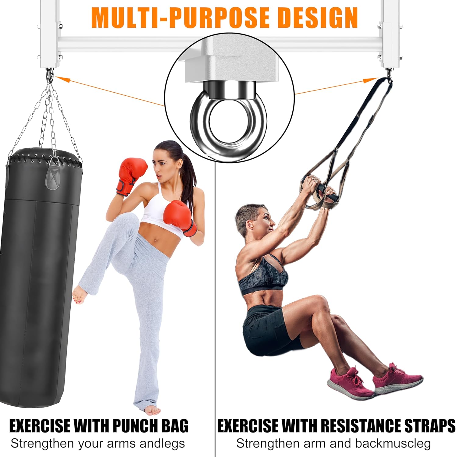 “This ceiling mounted heavy duty pull up bar combines industrial grade quality with versatile design, making it the ideal choice for creating a dedicated fitness corner in spaces like homes, garages, and basements. It fully meets fitness needs from core performance to user experience. Its structure and durability demonstrate formidable strength. Meticulously crafted from industrial-grade materials, the robust construction boasts a weight capacity of up to 700 pounds. Whether performing high-intensity pull-ups or suspending heavy weights, it provides stable support, ensuring complete safety for every workout. Additionally, the product’s surface features a professional white powder coating. This protective barrier effectively resists daily wear and tear, corrosion, and maintains stable performance even in relatively humid environments like basements, ensuring long-lasting durability without frequent replacements. Its multifunctional design significantly enhances fitness versatility. The dual-anchor point system serves as a “hub for fitness accessories,” seamlessly integrating with TRX suspension straps, resistance bands, sandbags, yoga straps, and power ropes. Whether performing pull-ups to strengthen back muscles, suspension crunches to engage the core, upper-body strength training with resistance bands, or stretching exercises using yoga straps, this pull-up bar effortlessly accommodates diverse fitness goals, delivering multi-dimensional training effects from a single piece of equipment. Installation is straightforward and adaptable. Compatible with both 24″”/16″” mounting spacings, it securely attaches to concrete walls, solid brick walls, or supporting wooden beams—overcoming spatial constraints. The package thoughtfully includes all necessary mounting hardware and detailed instructions, enabling effortless setup even for non-professionals. This eliminates the hassle of purchasing additional parts or hiring installers. Notably, it suits diverse indoor spaces like homes, garages, and basements. Regardless of room size, it helps you swiftly create a dedicated workout corner for anytime training. Moreover, HWOOUSA delivers reliable after-sales support. Committed to high-quality fitness equipment, the brand offers prompt assistance for any installation or usage issues simply contact customer service anytime for worry-free support. From robust weight capacity to versatile compatibility, from effortless installation to attentive after-sales support, this heavy duty ceiling chin up bar excels in every aspect, making it a practical and durable fitness essential.”