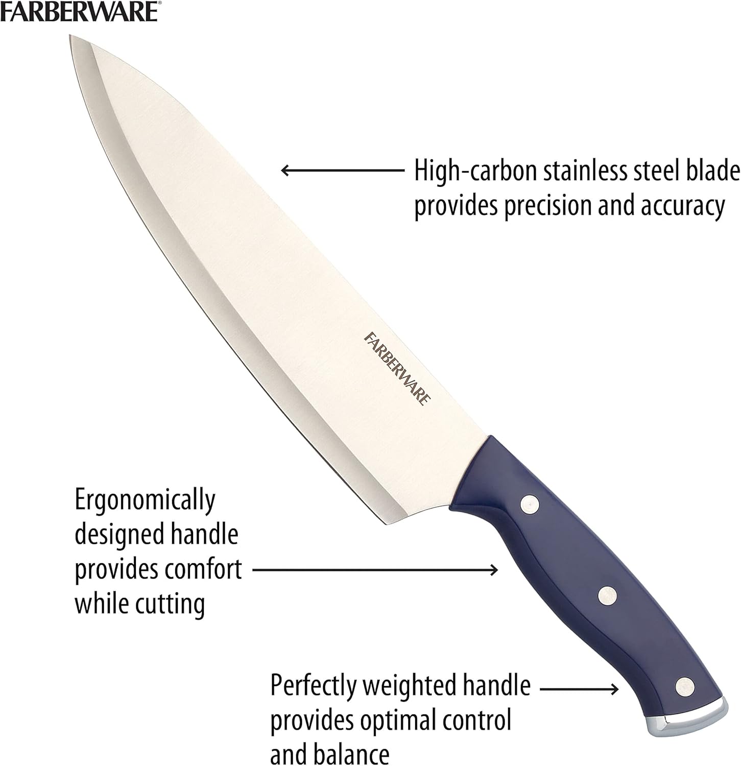 EASY CARE: Farberware knives should be hand-washed with warm water and a mild detergent. Rinse and dry immediately. Stainless steel knives are not dishwasher safe. Lifetime limited warranty.