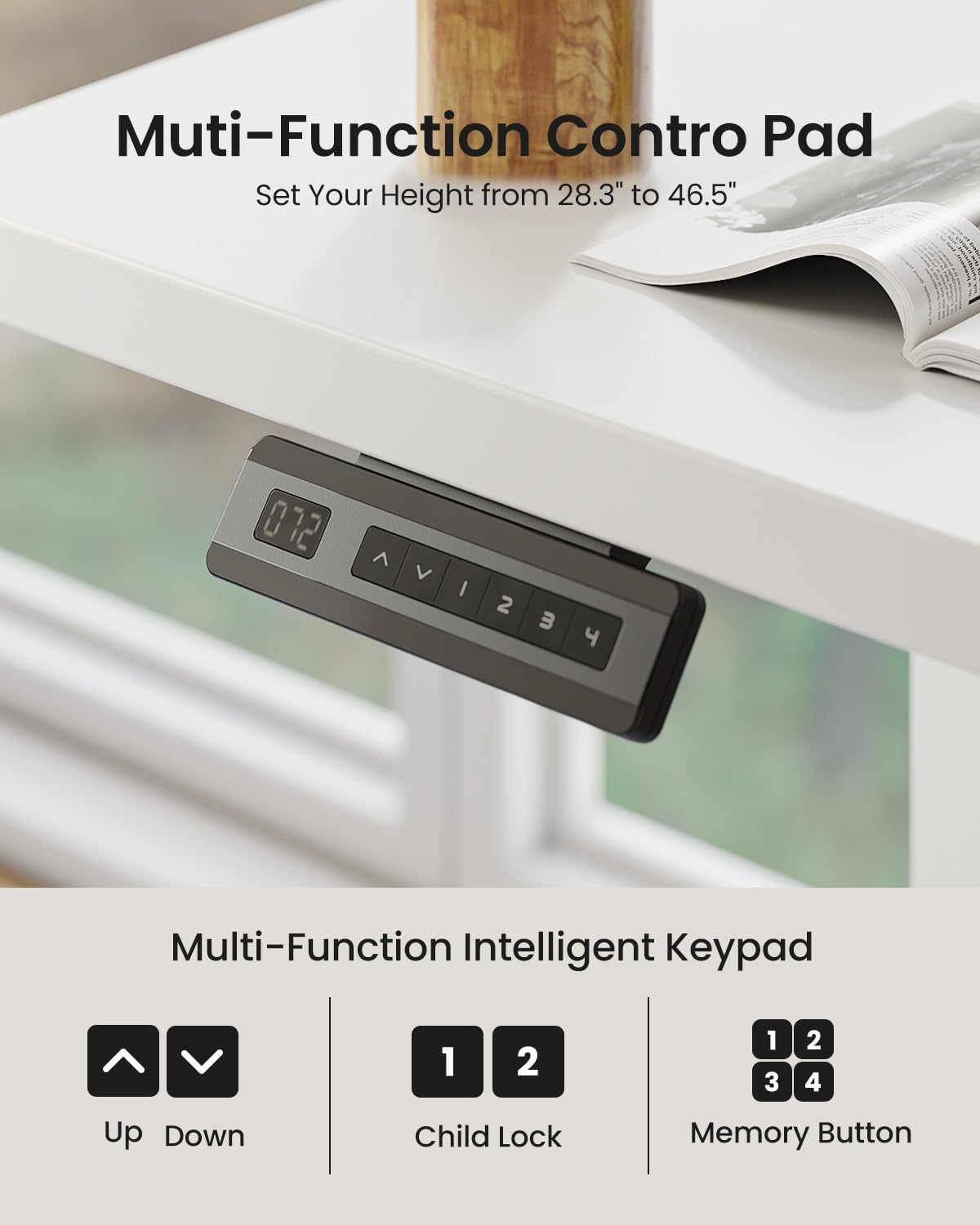 【Electric Height Adjustable】Fezibo L shape standing desk has 4 preset buttons to customize your desired heights from 28.3″ to 46.5″,smooth convert sitting to standing–the variety of height choices satisfy your multiple tasks.