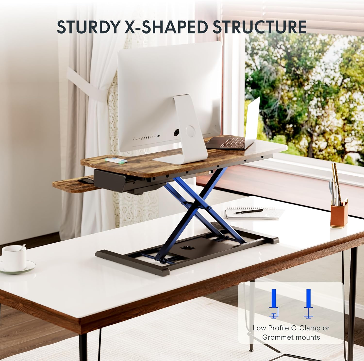 Rock-Solid Heavy-Duty Build – Engineered for stability, this stand up desk riser supports up to 55 lbs (44 lbs desktop + 11 lbs keyboard tray), making it perfect for dual monitors, laptops, books, and other office essentials—all without shaking or wobbling.