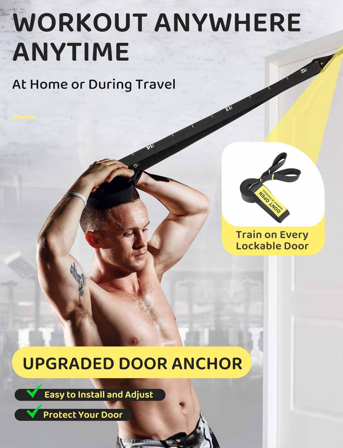 (Include Door Anchor, Foot Straps More Workout Options) GHB gymnastics rings set includes a door attachment that your exercise rings to attach to a solid door. Foot straps allow the lower body to engage in Abdominal training and core workout