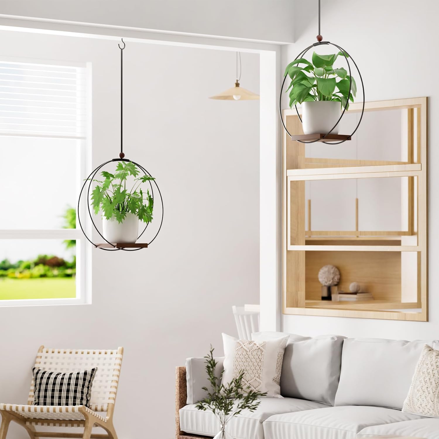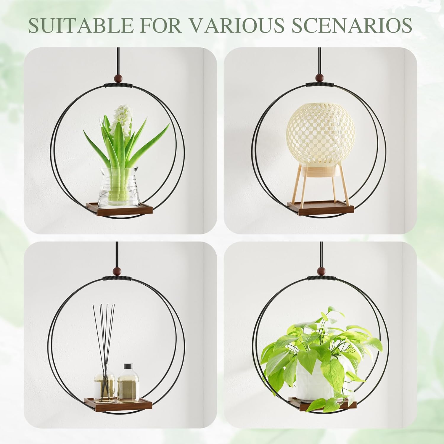 【Sturdy Iron Ring & Wood Base】Made with rustic solid wood base + durable iron ring, ensuring stability & long-lasting use. Supports hanging plants, flower baskets without sagging. Adds natural texture to living rooms, patios, or balconies. And keep your plants away from pets, Avoid plants being destroyed by pets.