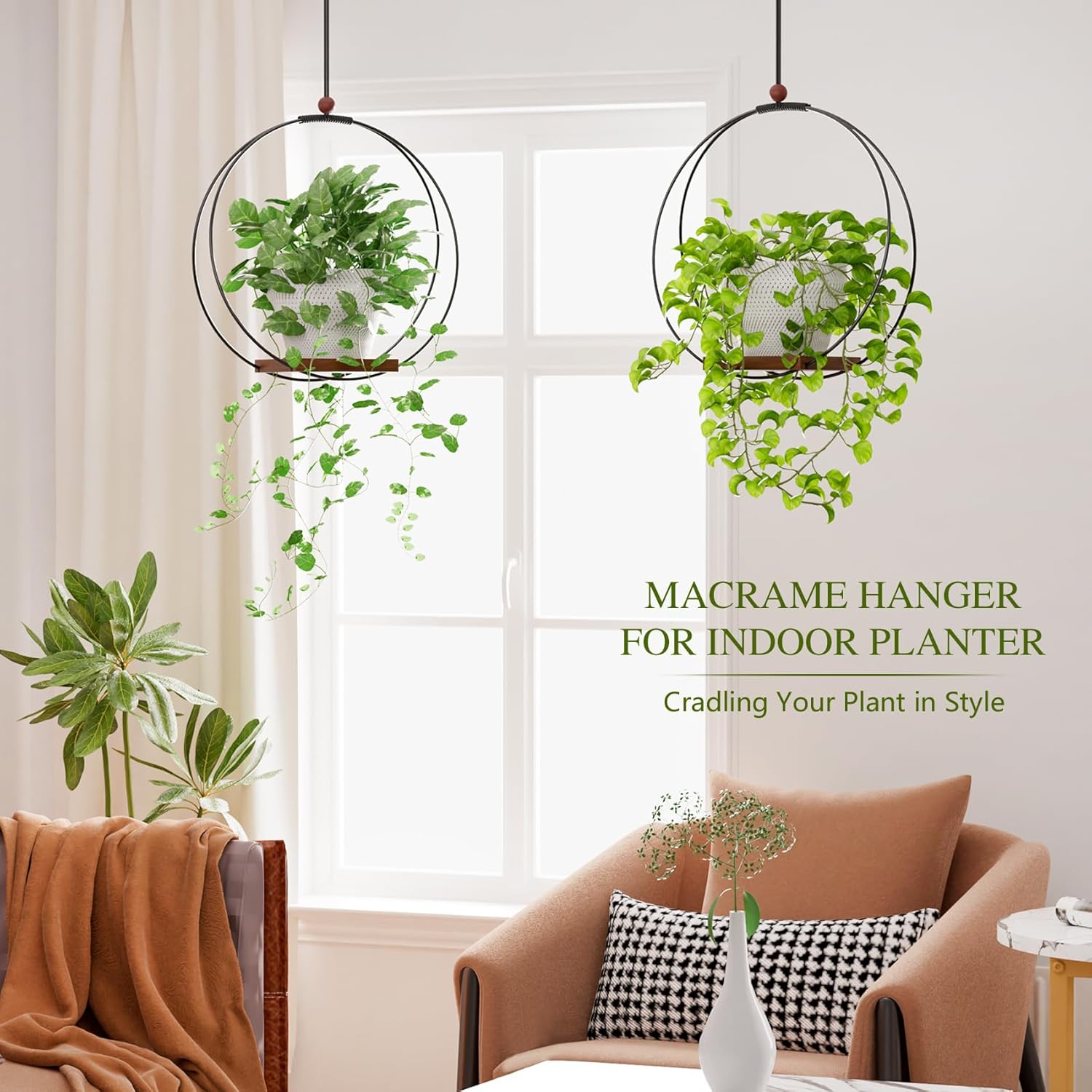 Hanging Planters for Indoor Plants: Macrame Plant Hanger with Sturdy Wood Base, Wall Ceiling Window Decor for Home Garden Patio Office, Housewarming Gift (Pot/Plant Not Included)