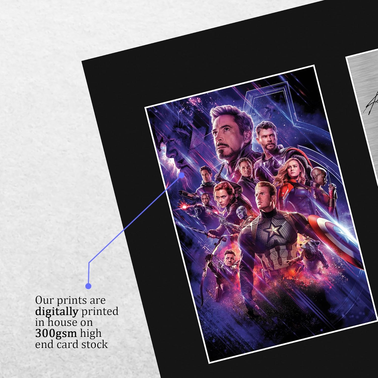 Professionally made in our studio, this Avengers Endgame Cast display makes for an ideal gift idea. This laser printed quality photograph is mounted in a precision cut three windowed acid-free matt black display board. To the left of the display there is the main image. To the right of the display there are two metallic effect plaque areas for printed copies of the name and autograph signature. These mounts also come with a ridgid backing board making them very sturdy and can be displayed or hung as they are. Alternatively we offer a framed version too. Lightweight, but of the highest quality, these make the ideal Christmas/Birthday gift for fans of all ages, and best of all, they definitely won’t break the bank!