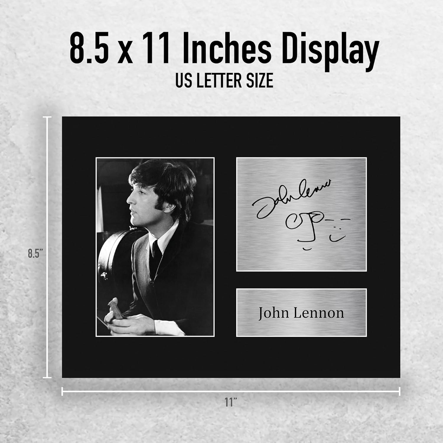 Professionally made in our studio, this John Lennon Beatles display comes with a high-quality picture alongside printed copies of their famous autograph signature. Mounted in a matt black using an acid-free display board, it’s perfectly finished with an autographed name in a silver, mock printed plaque.Lightweight, but of the highest quality, these make the ideal Christmas/Birthday gift for fans of all ages, and best of all, it definitely won’t break the bank!