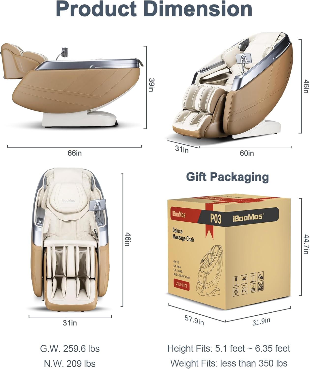 iBooMas P03 2025 4D Zero Gravity Massage Chair,APP Control Massage Chairs Full Body with SL Track,Touch Screen Navigation,Yoga Stretch,Foot Roller,Heat,Airbags,Wireless Charger (Beige)