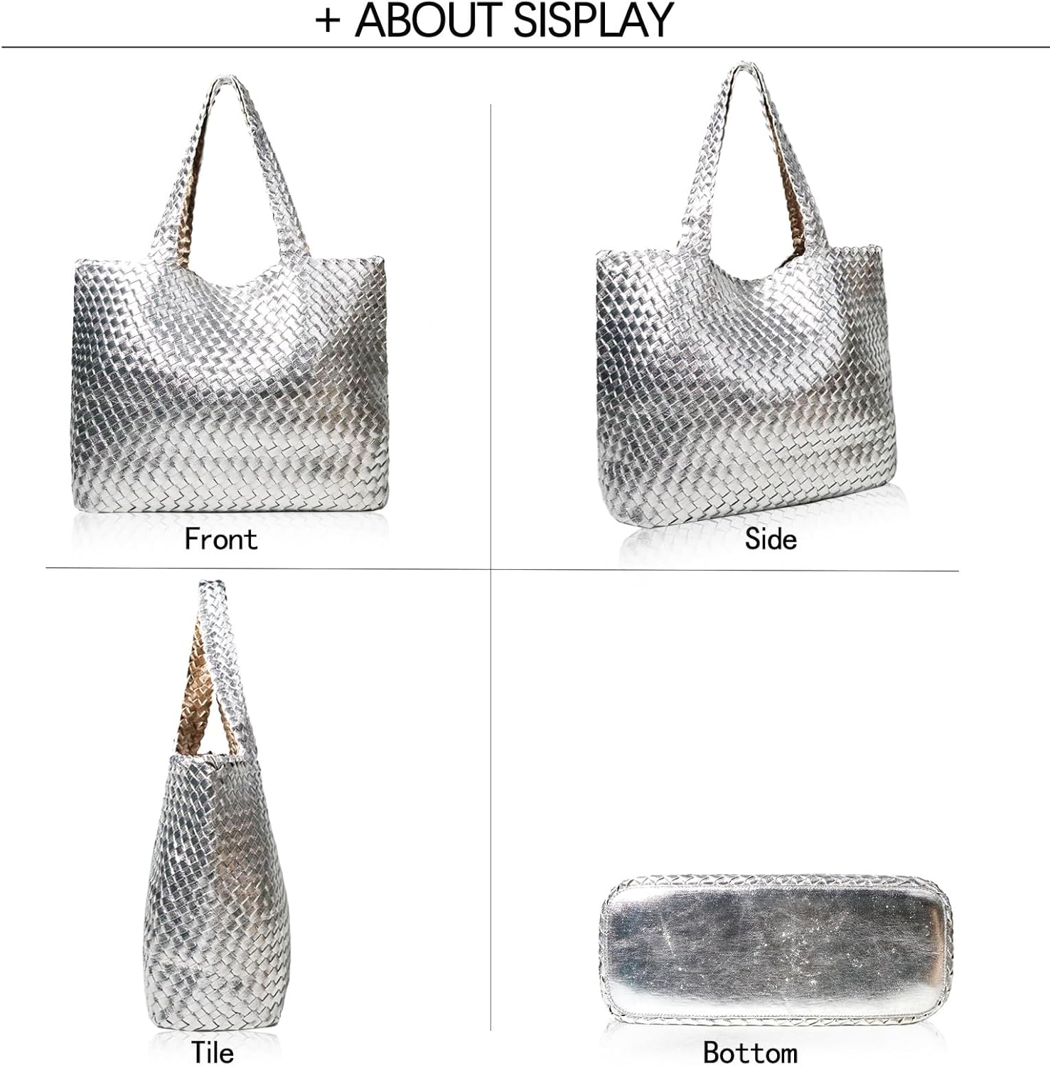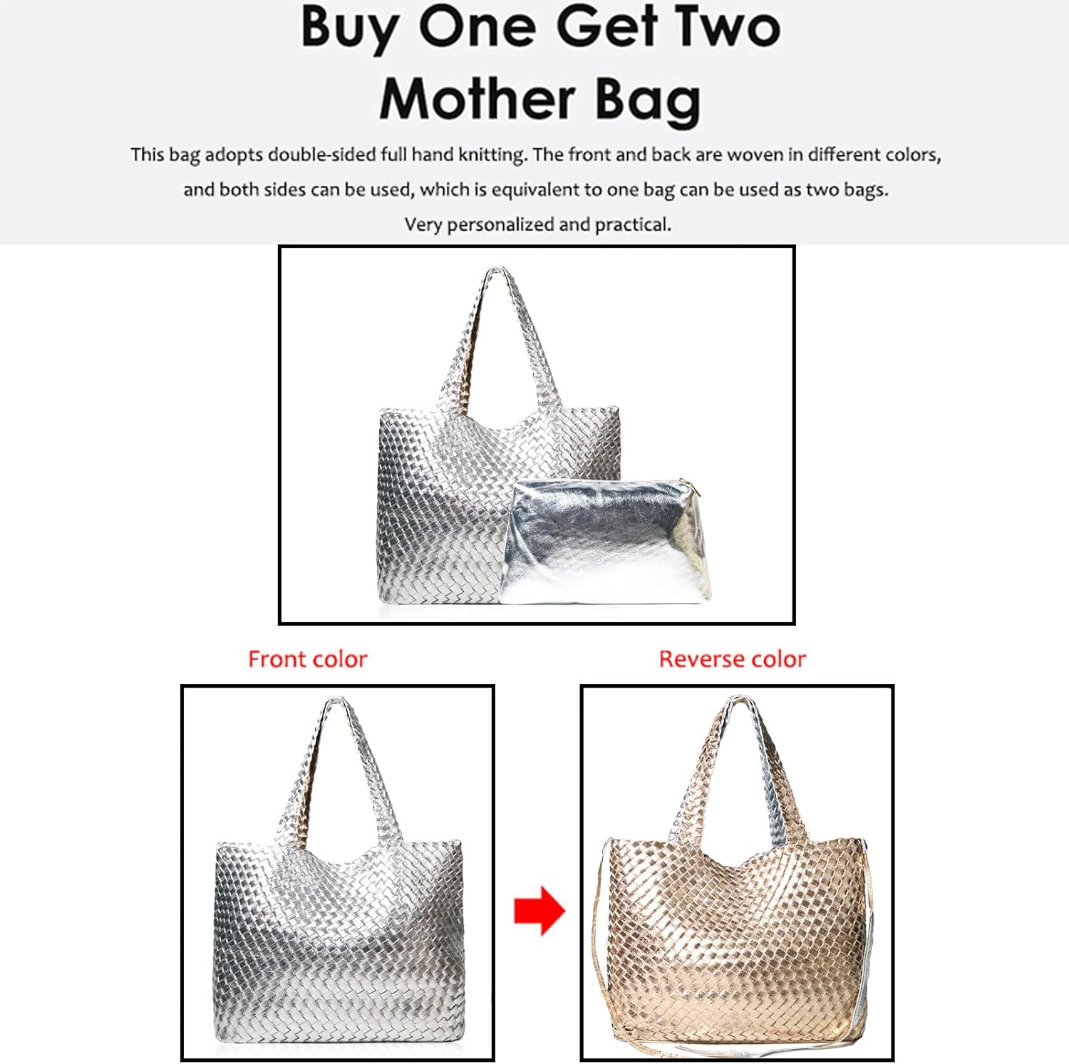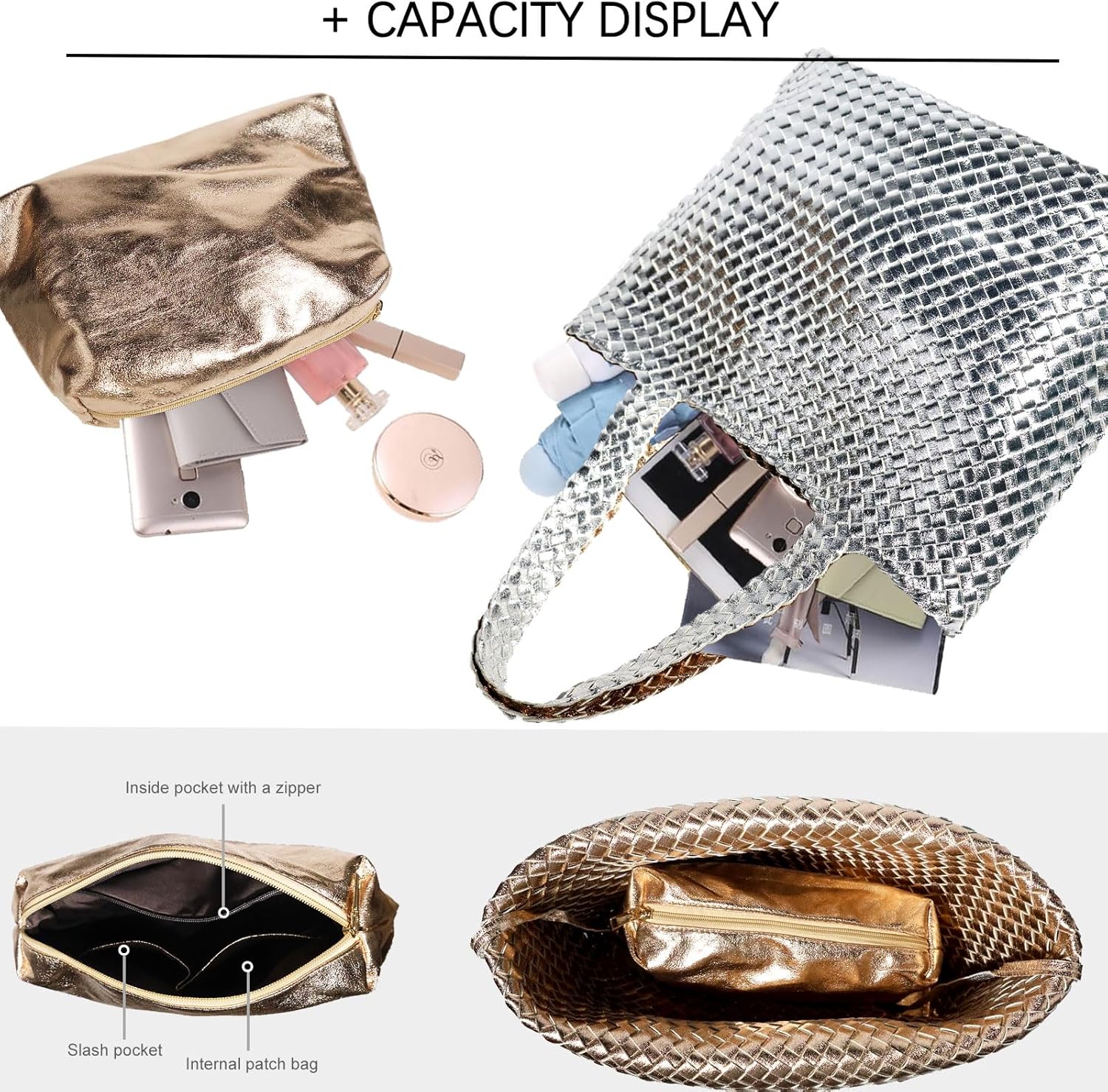 Hand woven bags can be used as a tote, shoulder bag, handbag, hobo.  Great summer bag, it is spacious and versatile with a cute clutch so you can take it to the beach or go travelling.  Go with any style such as dresses, skirts, jeans, trousers, coats, jacket as well as high heel shoes, sandals, pumps, sneakers and slippers.    Size Reference Main Pockets: 14.5″ W x 6.2″ D x 13.7″ H; Handle height: 9.8″ , the handle easy to hold, but long enough to go on your shoulder; Clutch: 12.2″ W x 3.5″ D x 8.2″ H, where you can place your makeup or valuables (i.e., wallet, keys and cell); large capacity bags for women This top handle handbag inside is the perfect size to hold essentials minus a tablet or mini laptop. It also fits things like a makeup bag, phone, wallet, book, etc.  Tie The Rope  Compared with casual zip or magnetic closure, this shopper bag fits double rope to keep your items safe. Plus, when you tighten the rope inside, you get a beautiful woven hobo.  Woven Hobo  Unlike the usual square tote bag on the market, the large tote bag can change its shape as a ladies hobo. This 2 in 1 design makes this handbag more flexible.  woven tote bag for women The roomy space woven tote bag have a wide open mouth to ensure its quick access. Providing wide range of view so that you don’t waste time to find everything you want.  Retro leather handbag made of durable vegan leather with delicate handmade instead of machine. Foldable design  Soft Foldable Foldable design so you can store it in the corner when not in use without losing its shape.  durable handbag  Durable Handbag Smooth handle handbag is working to send you comfortable when you go out shopping or travelling.  good stitched  Neat Stitching Neat and tidy stitching by careful craftsmanship consist in creating durable and strong bag.  3D Bottom  Sturdy Bottom Rectangular base on the inside to keep the case stable on a desk or in a car.