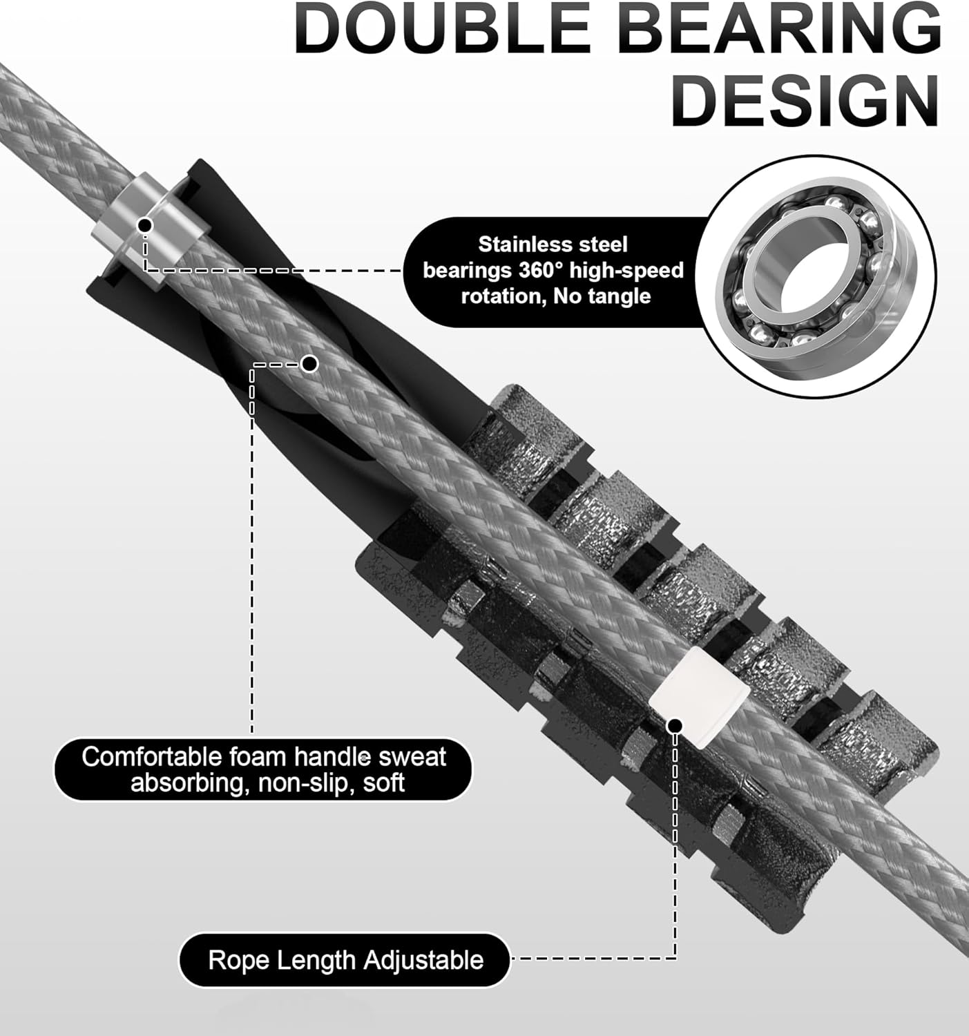Workout Skipping Rope: The durability of the fitness jump rope is enhanced by an anti-abrasion tube at the bottom that protects the rope from wear and tear, making it more resistant to breakage