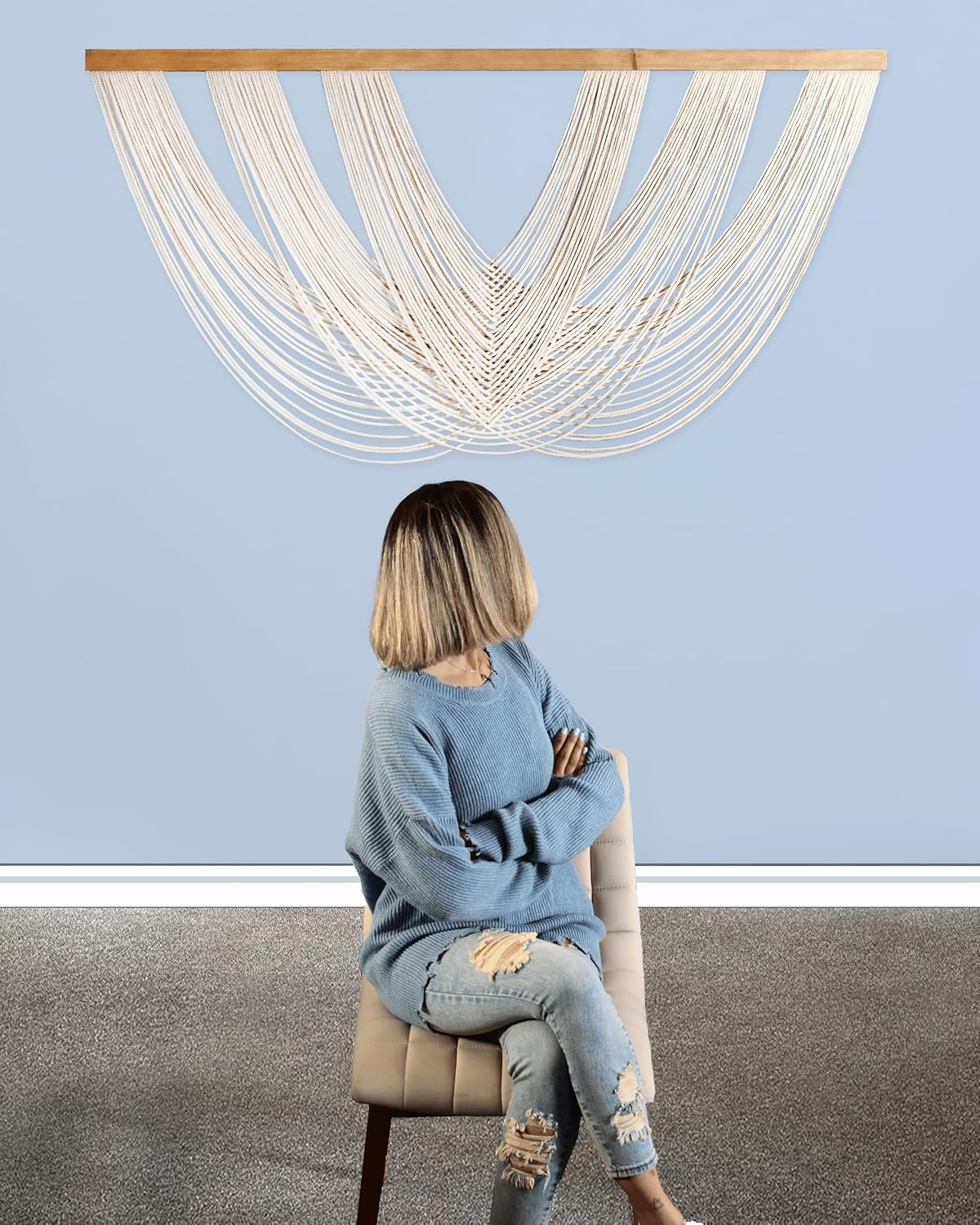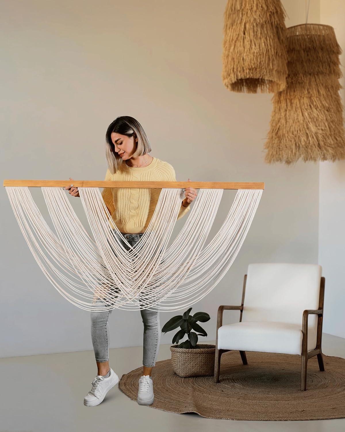 ✨ Luxury Boho Wall Décor: Crafted for those who value artisan detail, each cotton cord is patiently intertwined by hand to form our signature twisted drape — a slow, intentional process that sets it apart from mass-produced alternatives