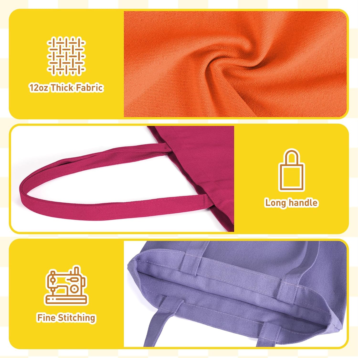 Vibrant Color Choices: Brighten your day with our stunning collection of canvas tote bags, available in 12 eye-catching colors. Each set includes 2 bags of the same color, making them perfect for gifting or keeping one for yourself!