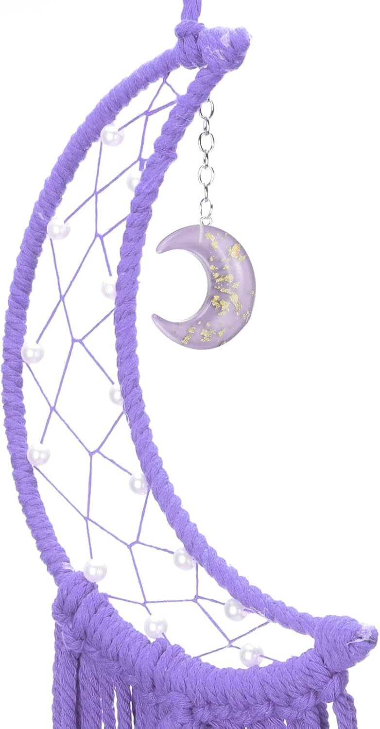 Moon Size: 20x13cm/7.87×5.12inch; Total Length: 110cm/43.31inch; Color: Purple; Material: Iron Ring and Cotton; Packing List: 1Pcs Dream Catcher.