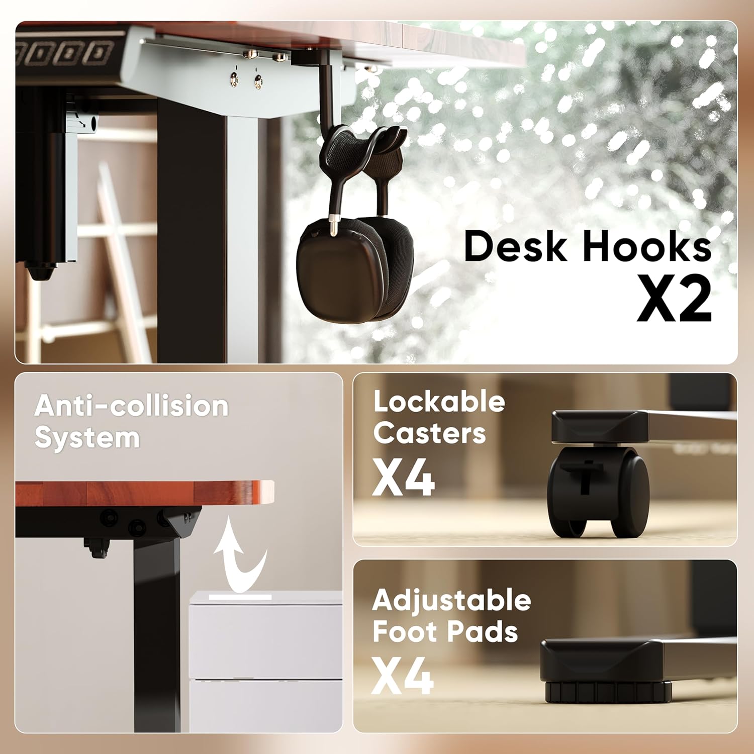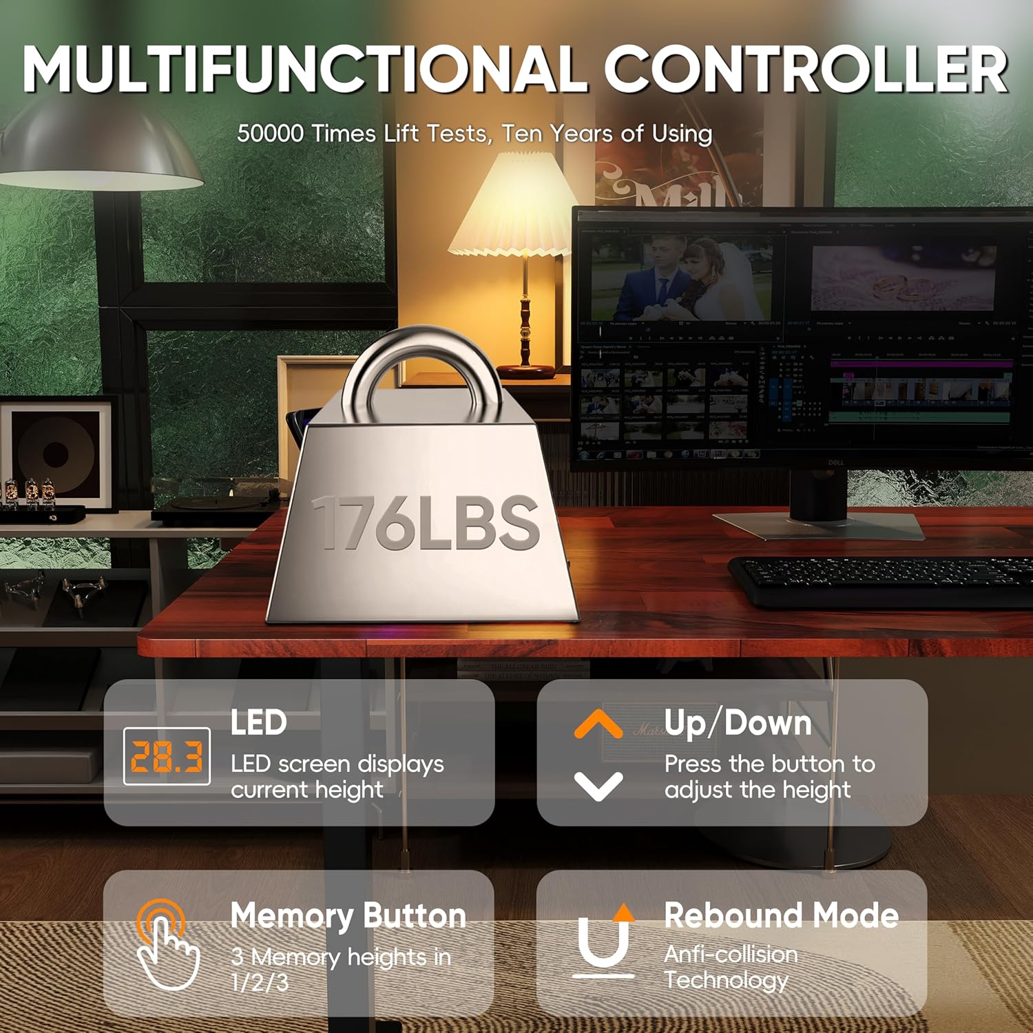 【Exceptional Stability】: This electric standing desk boasts a solid industrial-grade steel frame and aerospace-grade lifting column connector, (still stable & secure after testing 100,000 times).Providing a 188 lbs weight capacity .Come with detachable and lockable caster, make your desk moves eaily.