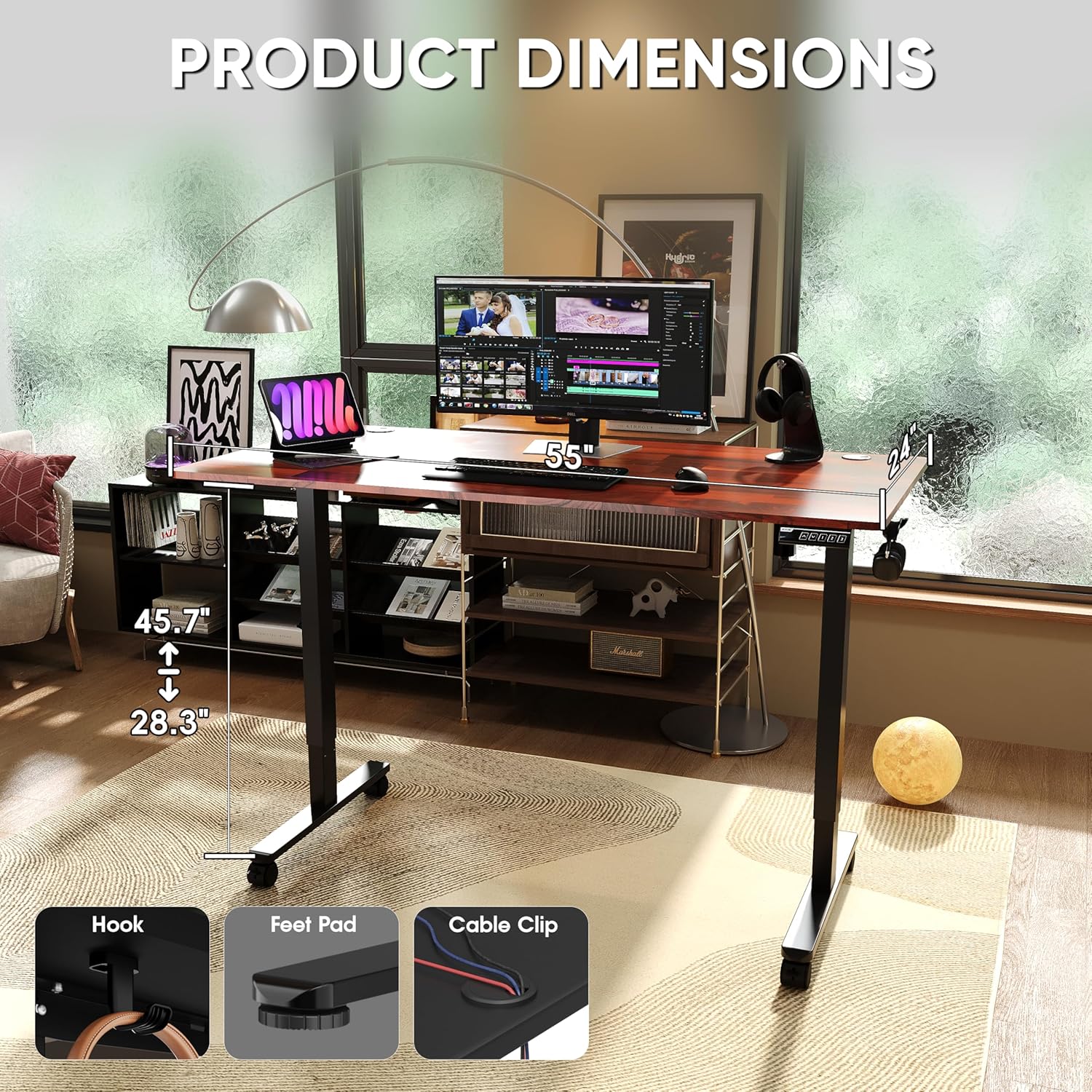 【Ergonomic Work Space】: Ergonomic desktop design is more comfortable for you to use,meeting US federal and state safe air standard’s Large 55”x 24” inch desktop offers enough room for ongoing projects and office supplies.