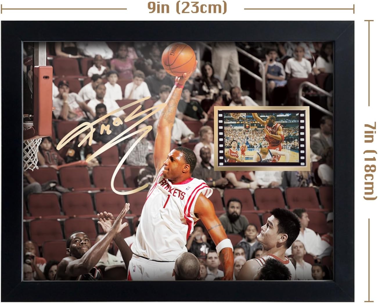 Fans Favorite Tracy McGrady Framed Poster: This is a framed art decor very collectible that huge McGrady fans will love it very much;McGrady was ranked on SLAM Magazine’s “Top 75 Players of All-Time” in 2003;He is a shooting guard,but can also play as a small forward and recently as a point guard;On December 9,2004,he scored 13 points in the last 33 seconds of a game against the San Antonio Spurs,in the game that helped the Rockets win 81–80