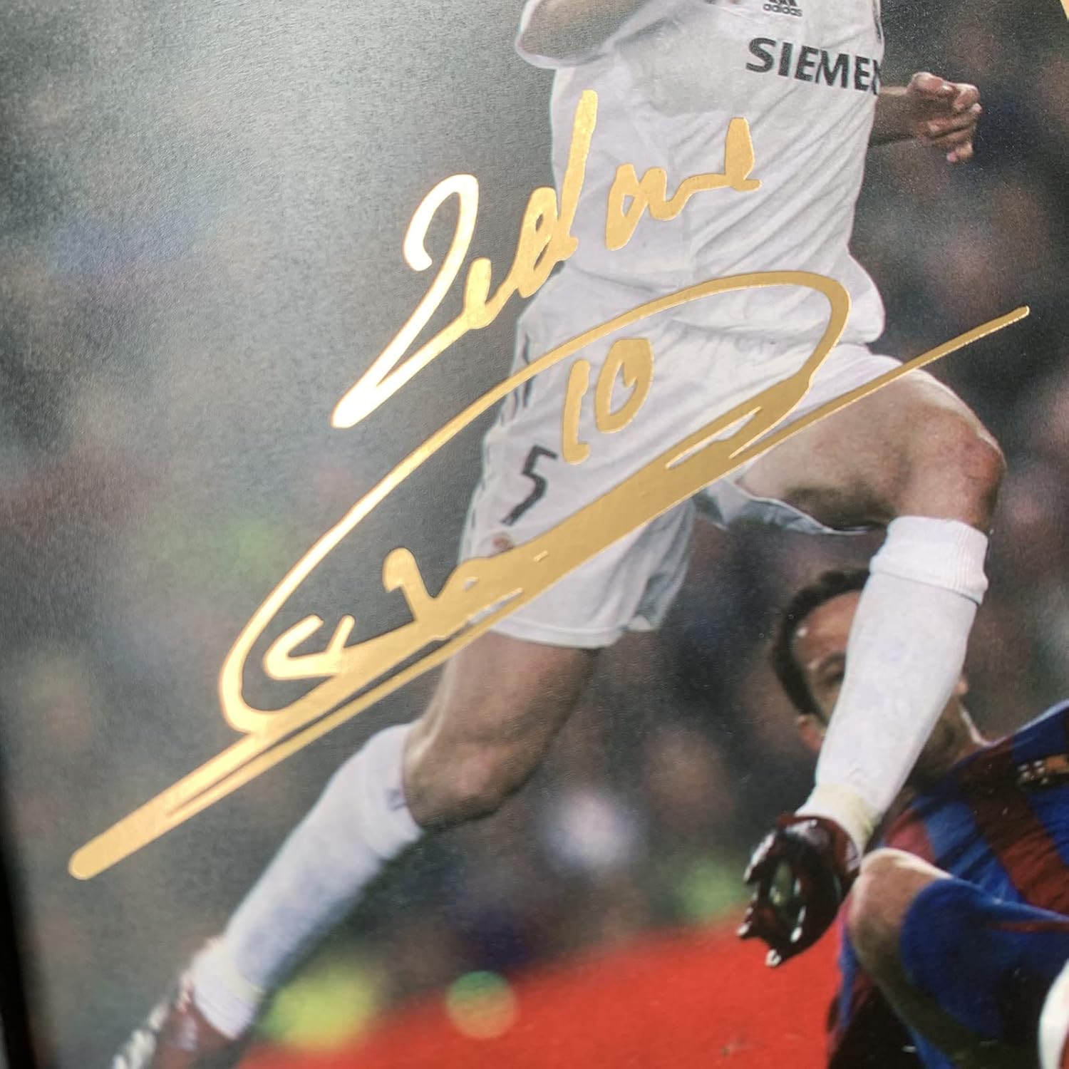 Fans Favorite Zinedine Zidane Memorabibia: This is a framed poster decorations very collectible that huge Real Madrid fans will love it;Zidane is the greatest soccerball player in French history,he has beaten Thierry Henry and Ronaldo to the FIFA 2003 World Player of the Year award