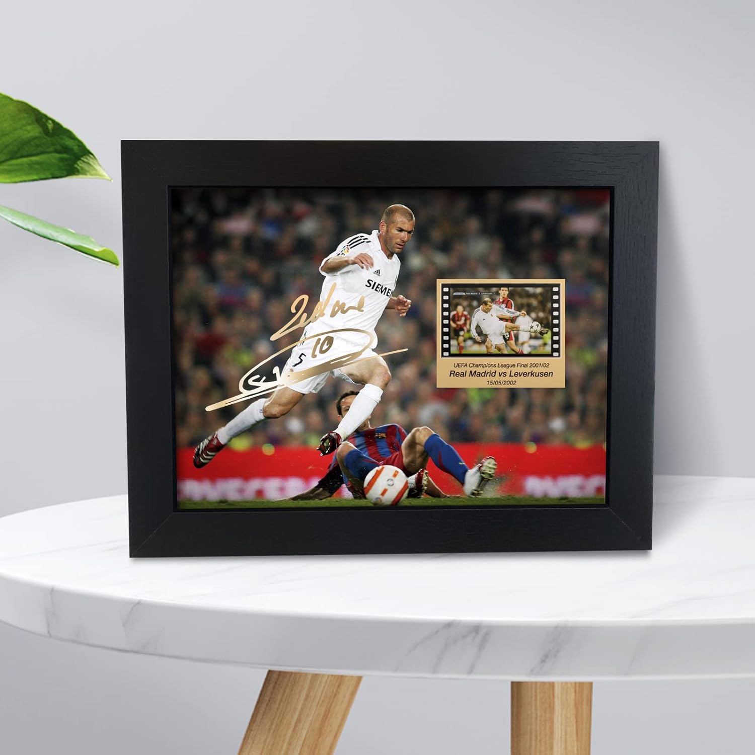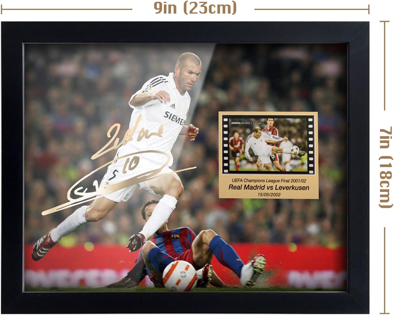 ORIMAMI committed to designing more high-quality collectible gifts and home office decor for huge sport/soccer/basketball fans,suitable for most occasion.The receiver will love it; The Pichture Signed:Our designs feature a digital reprint of the original autograph.They are printed,not hand signed originals; Film Mini Cell Showing: one of the scenes from UEFA Champions League Final 2001/02;05/15/2002 Real Madrid vs Leverkusen; This black frame made of high-quality MDF wood,high transparent PMMA panel;HD printed picture more clear;Picture size:8×6 inches,Frame size:9x7x0.5 inches(23x18x1.2 cm).Framed type is desktop support; A great gift and a perfect addition to your home office decor.Should you have any doubt please contact us before purchase,and will do all we can to resolve any problems.If you are not satisfied with our products,and we provide up to 30 days of exchange or refund services.