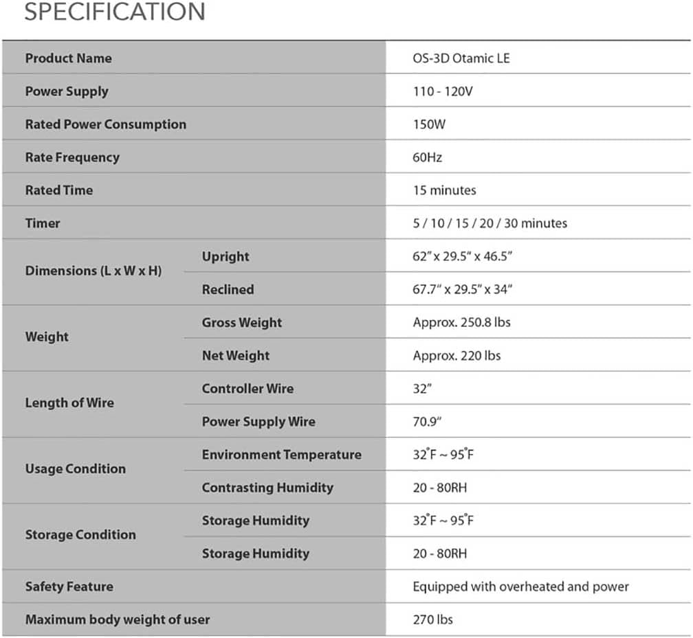 ZERO-GRAVITY MASSAGER: Zero-gravity massage chair allows for the complete weight of your back to be virtually supported by the backrest, maximizing the intensity of the massage