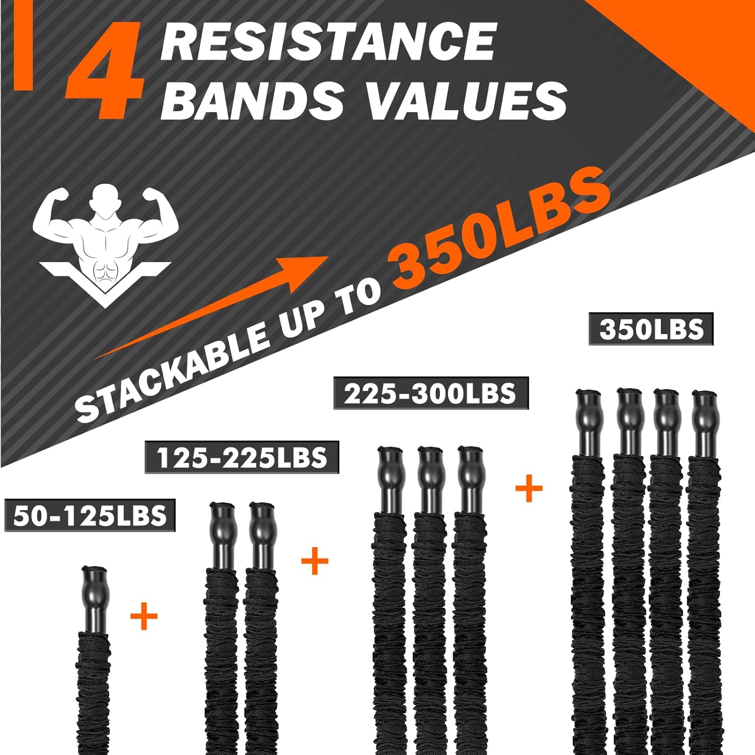 4-Band System for All Strength Levels: Our pull up bands assistance bands set includes four resistance levels (50/75/100/125lbs) that combine to provide 12 different resistance options from 50-350lbs. The 25lb increments allow perfect progression whether you’re doing your first assisted pull-up or training for advanced exercises. Ideal for fitness pros & beginners
