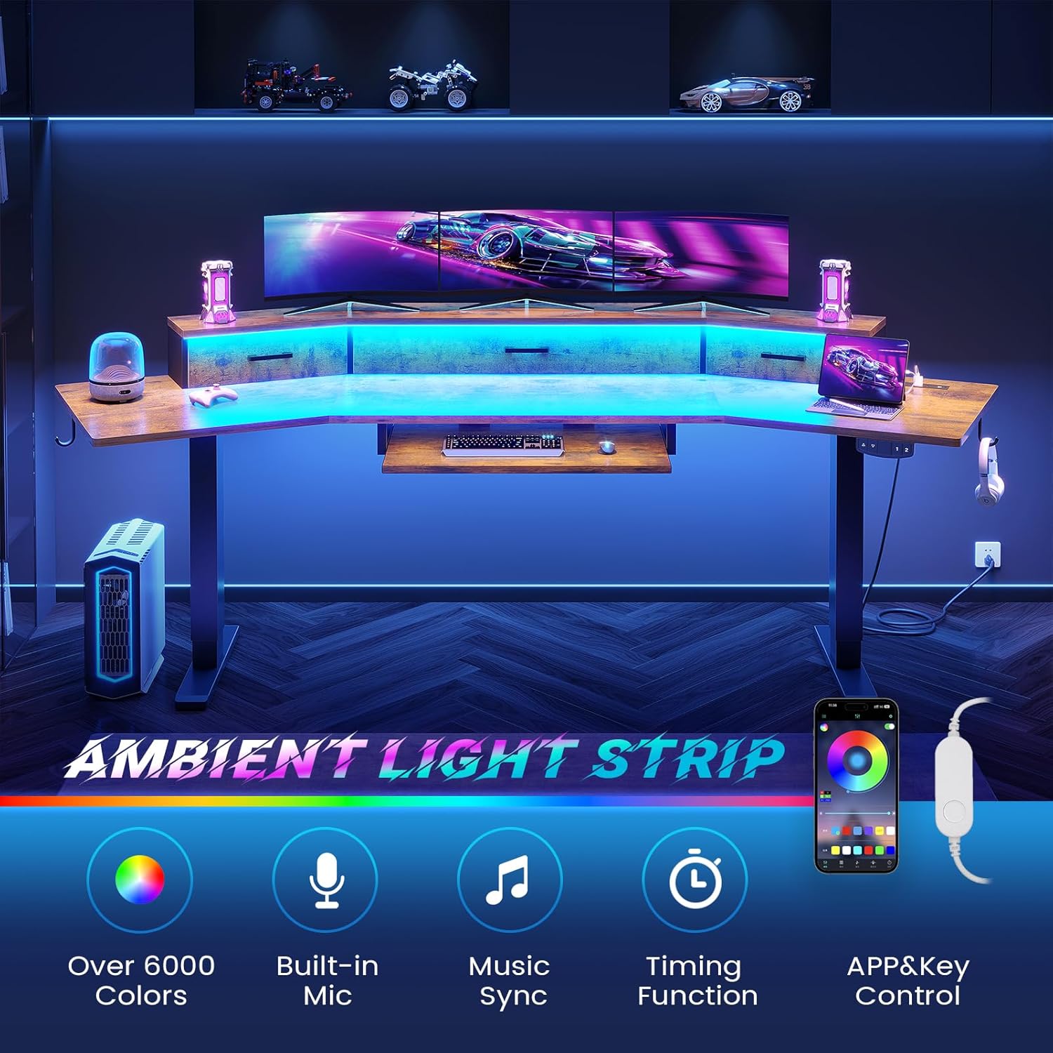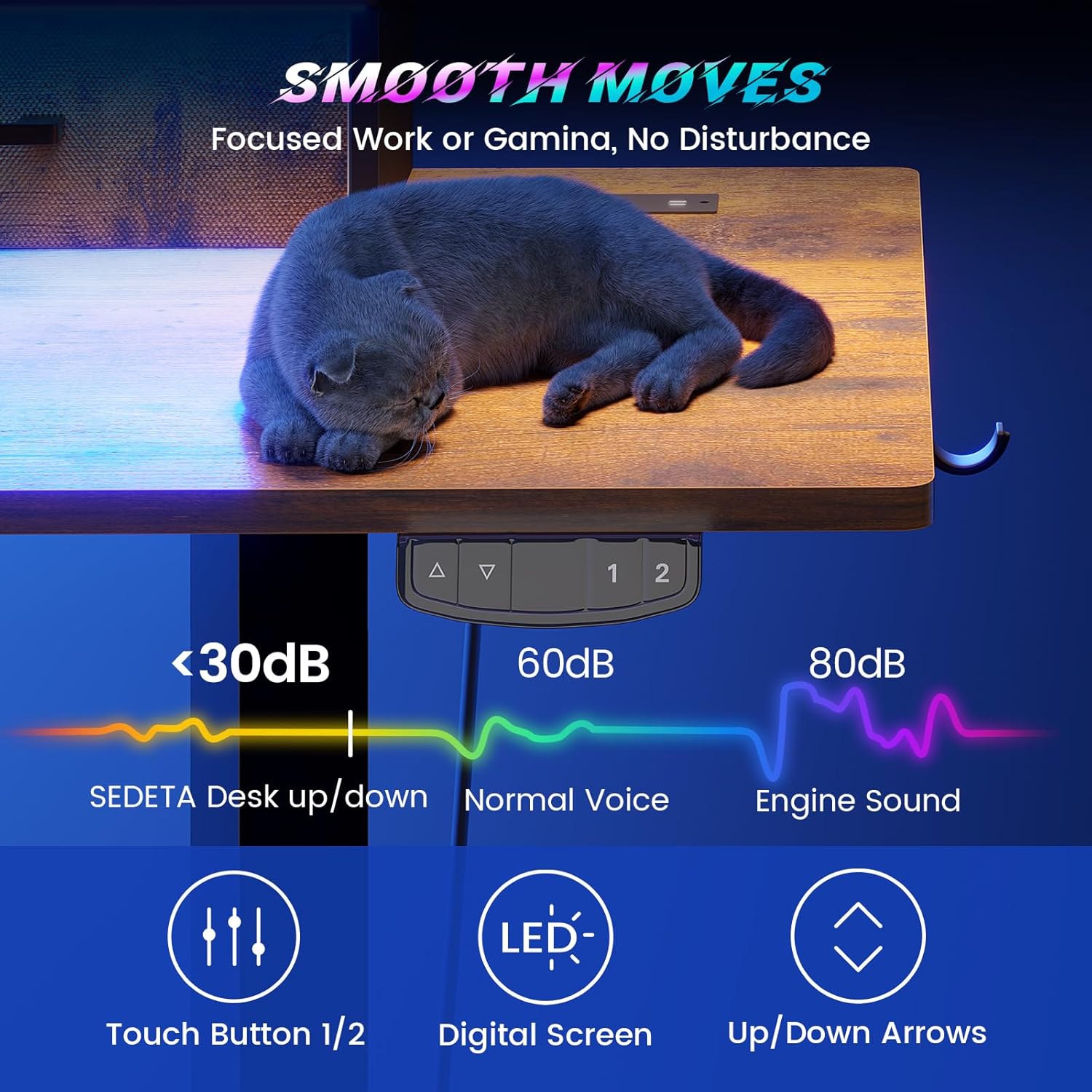【Cool & Smart Led Light Strips 】The Sedeta gaming desk comes with RGB LED light strip, remote control via APP, Over 60000 colors and 29 flashing modes for your to choose. Led light strip with music sync function, built-in sensitivity adjustable mic, led light color will change with the rhythm of the sound and music. And with timer function, just enjoy it in a smart way, create gaming and working atmosphere.