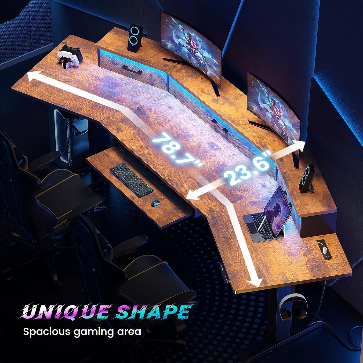 【78.7” Ergonomic Wing Shaped Desk】People who work or game for long time will feel very comfortable as it provides flexible room for abdomen and arms;The wing shape desk design makes it easy to reach and grab what you want as well; SEDETA Ergonomic gaming desk area of 78.7×23.6 inches accomodates your music, studio,gaming or live streaming equipments while you still have ample room to move.