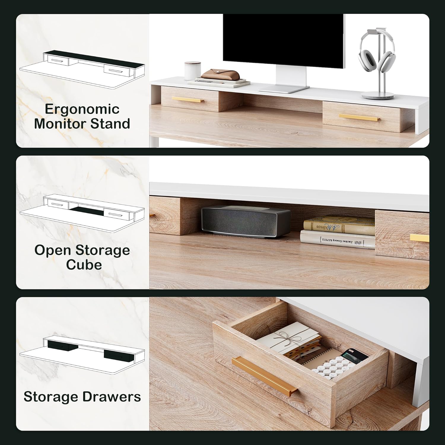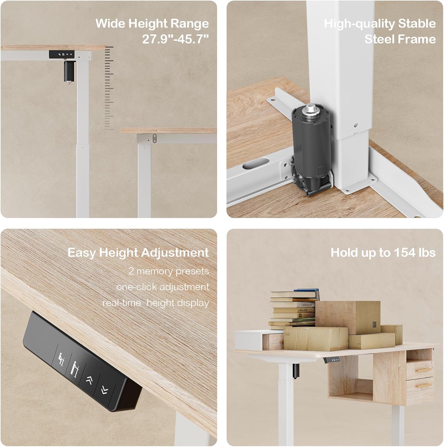 Ample Storage Space: This height adjustable desk is designed with an under-desk storage part, which includes 2 drawers and an open storage cube, providing ample space for you to store books, office supplies, electronic products, etc. Save space on your desktop