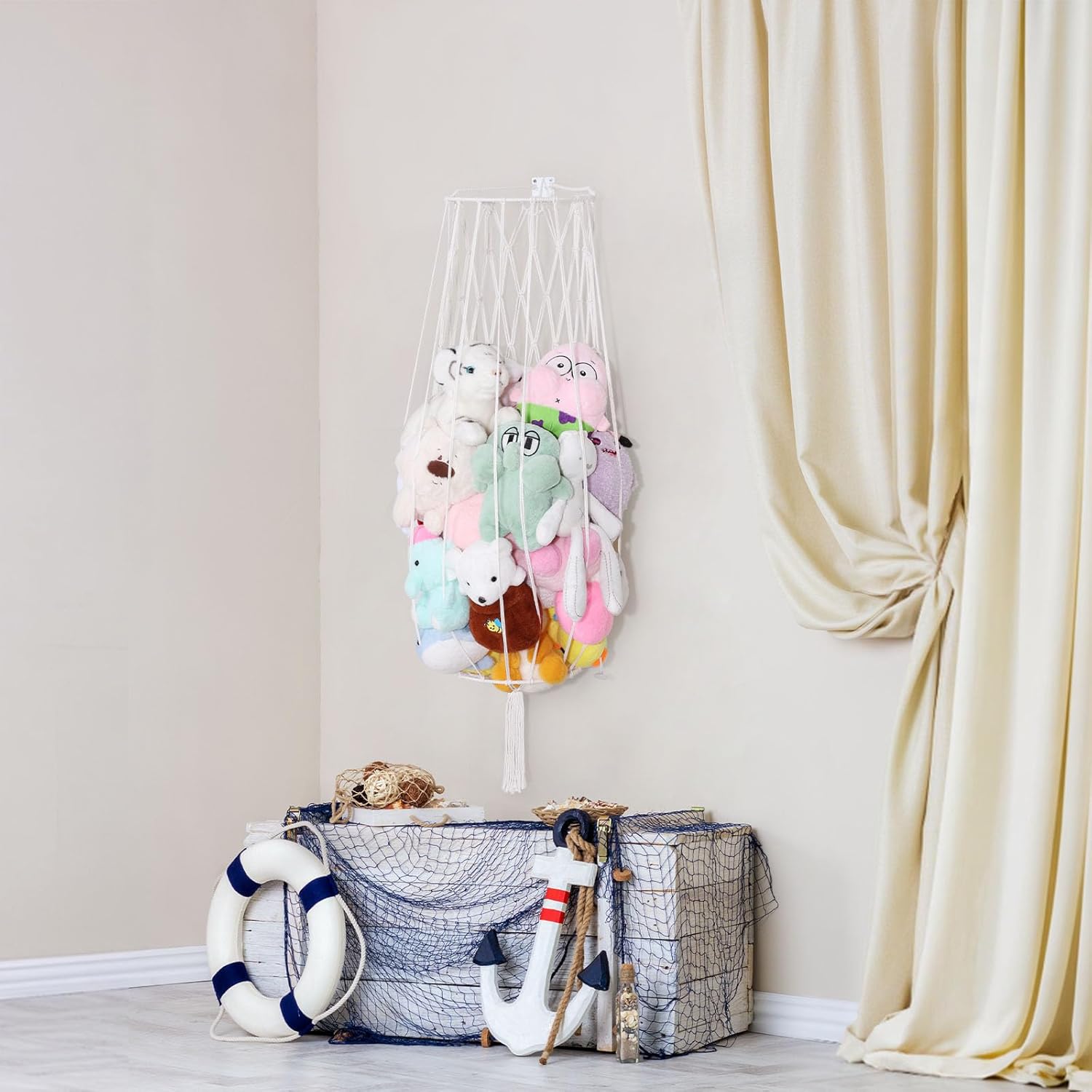 Stuffed Animal Storage Large Toy Organizer, Hanging Stuffed Animal Hammock , Macrame Toy Holder Storage, Wall Plushie Net Display Shelf for Kids Nursery Bedroom Home Decor