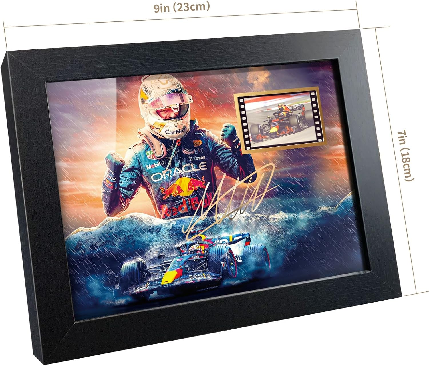 GREAT RACING GIFTS: This cool Max Verstappen film photo collage has a gold stamping signature printed on it;Great memorabilia gift for F1 Racing fans on birthdays,Graduation,Thanksgiving,Christmas,New Year,Mother’s Day,Father’s Day,and other holidays;Note: the signature not the original handwritten