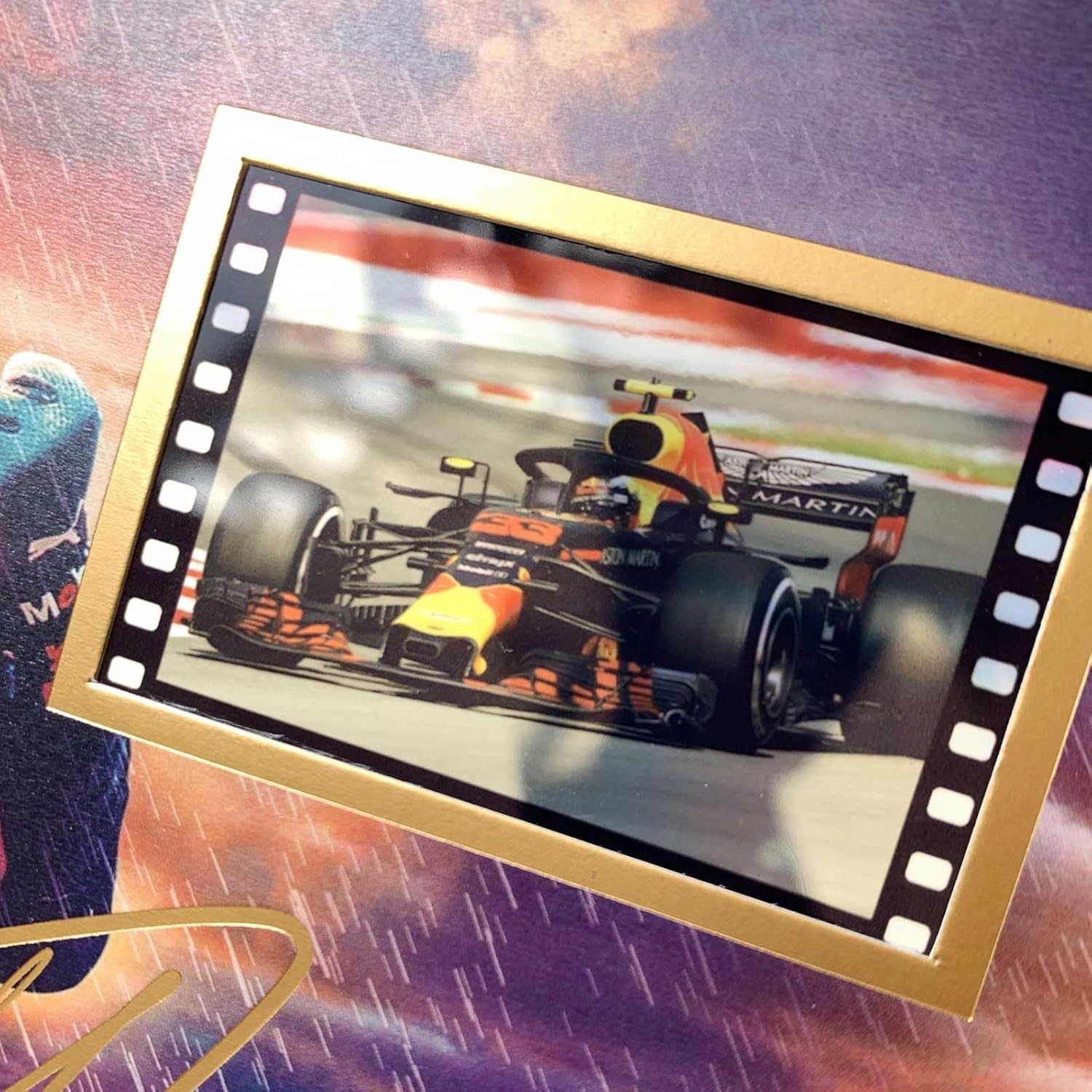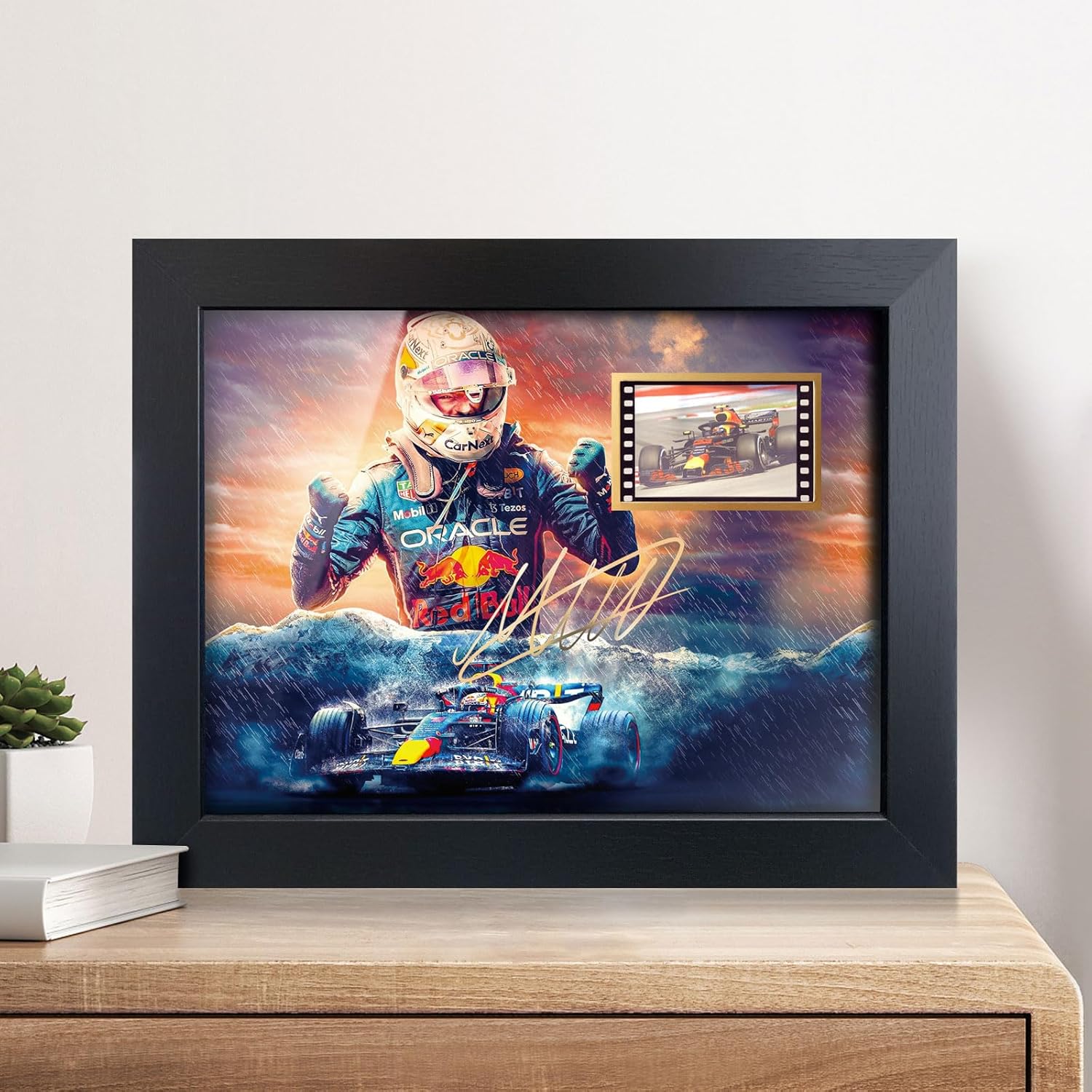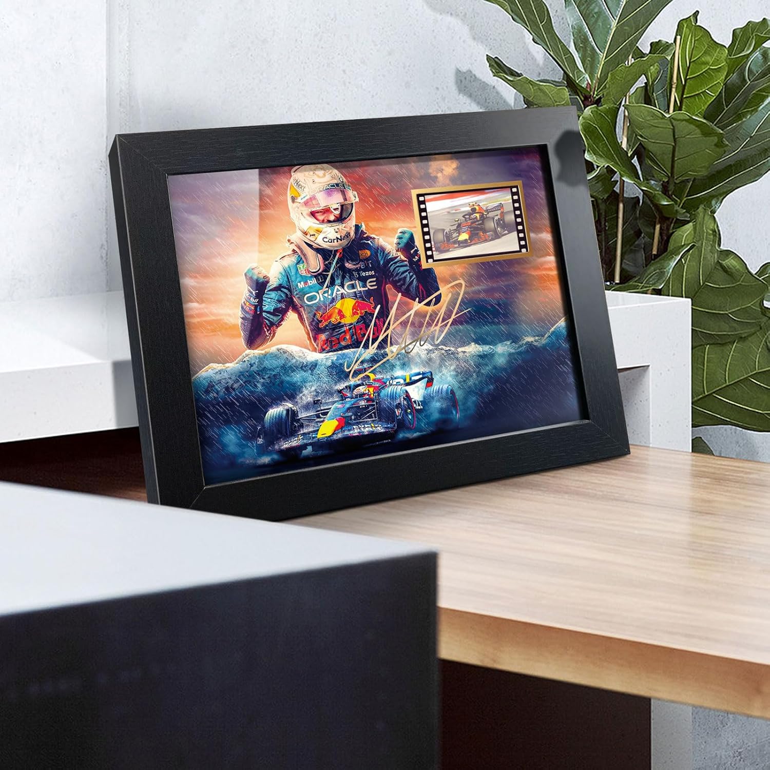 GREAT RACING GIFTS: This cool Max Verstappen film photo collage has a gold stamping signature printed on it;Great memorabilia gift for F1 Racing fans on birthdays,Graduation,Thanksgiving,Christmas,New Year,Mother’s Day,Father’s Day,and other holidays;Note: the signature not the original handwritten