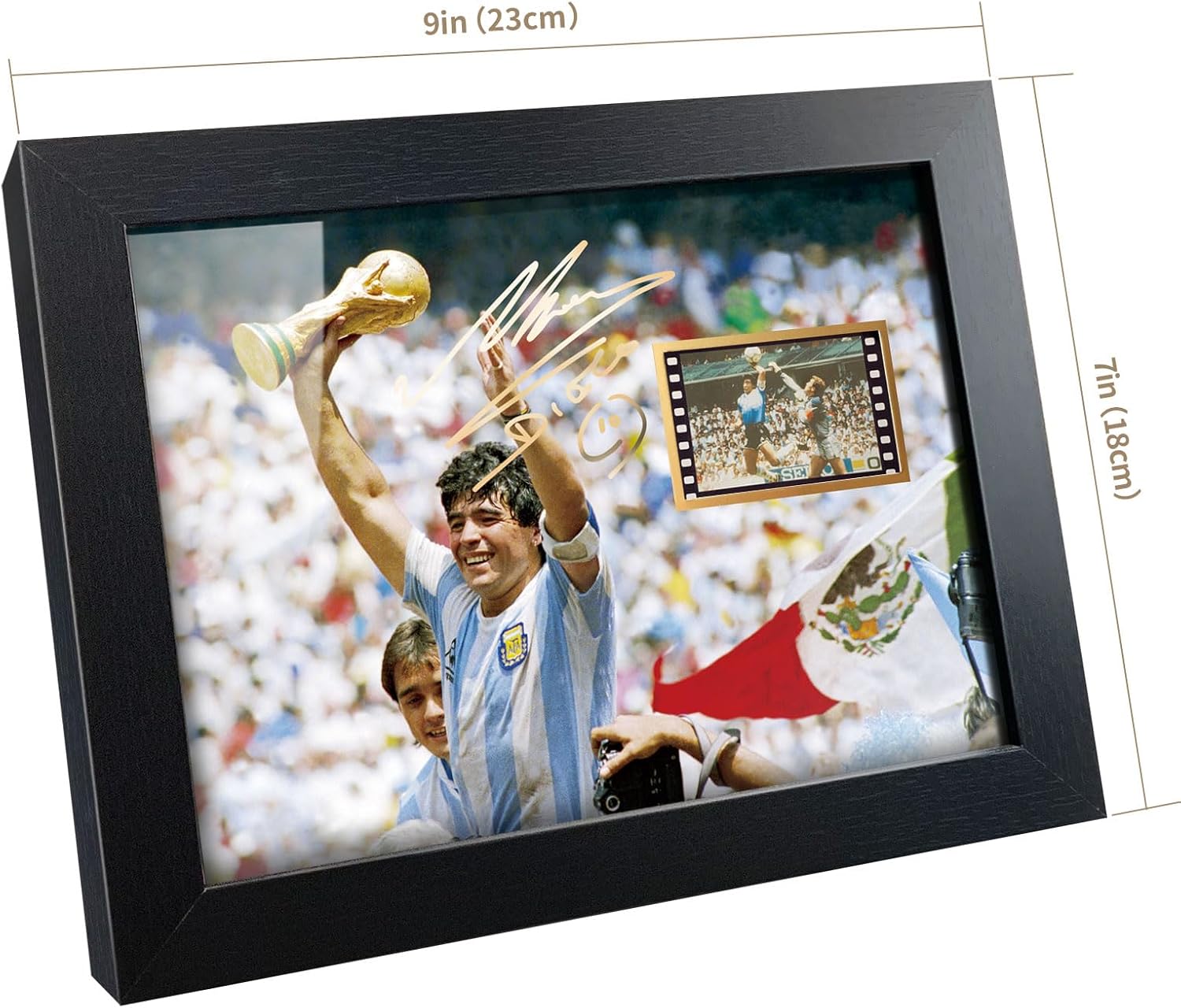 GREAT MARADONA GIFTS: This cool Maradona film photo collage has a gold stamping signature printed on it;It is packed in an exquisite box,great memorabilia gift for soccer Maradona fans on birthdays,Graduation,Thanksgiving,Christmas,New Year,Mother’s Day,Father’s Day,and other holidays;Note: the signature not the original handwritten