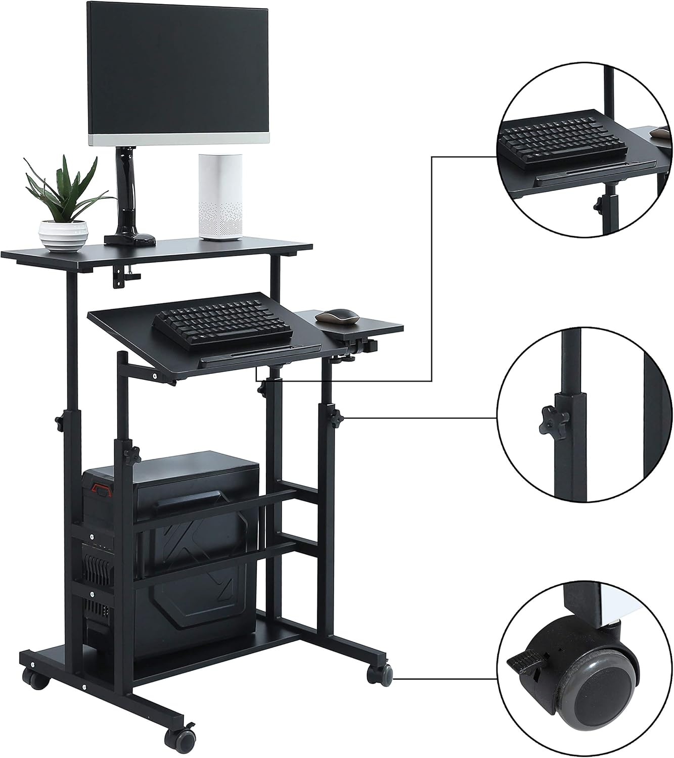 Height Adjustable Convenience: The standing desk mobile design allows you to seamlessly switch from sitting to standing with its height adjustable feature, making it a versatile mobile stand up desk suitable for any workspace.